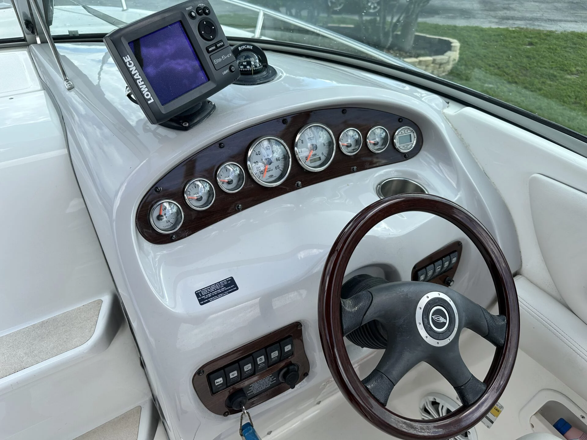 This boat has been inspected by Mount Dora Boating Center and Marina’s service department. Everything checked well including engine compression. All electrical systems function as they should. Both interior and exterior of this boat are in good condition.