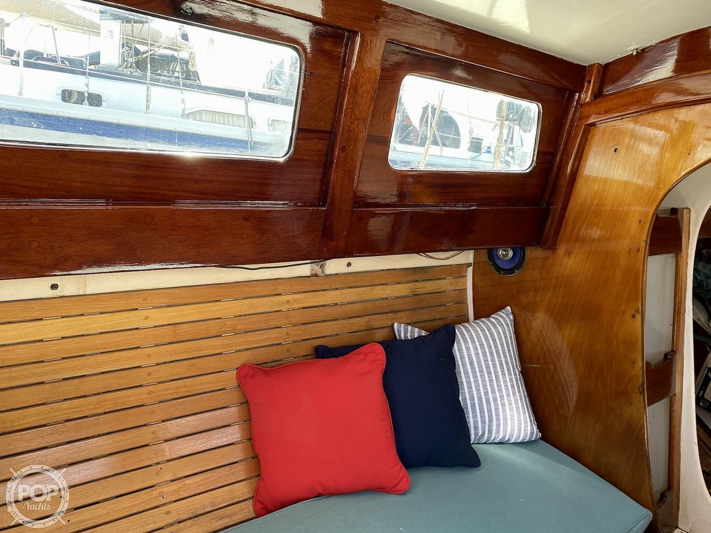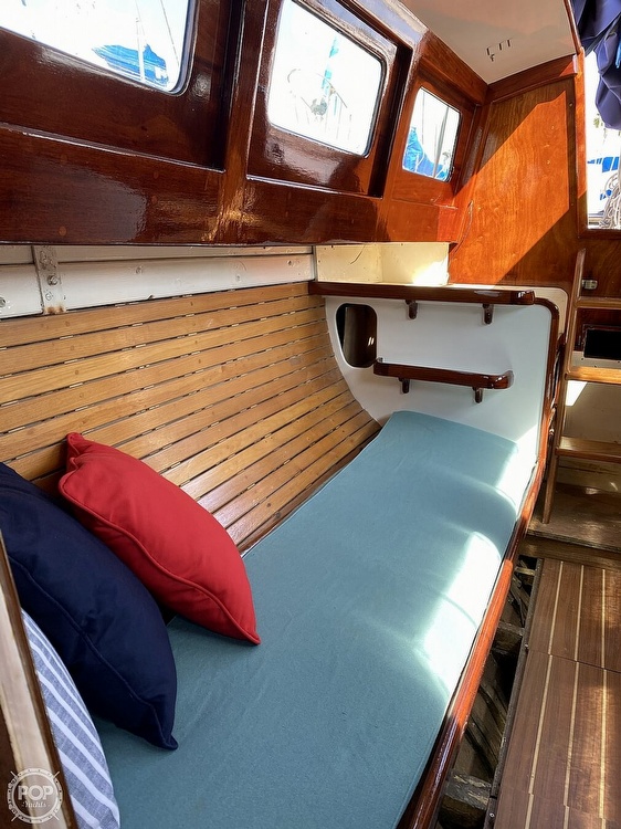 She has had her hull re-planked with mahogany and the new ribs are laminated with purple heart. Her engine and interior were removed.