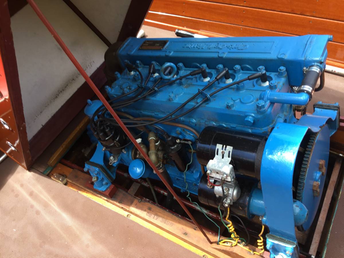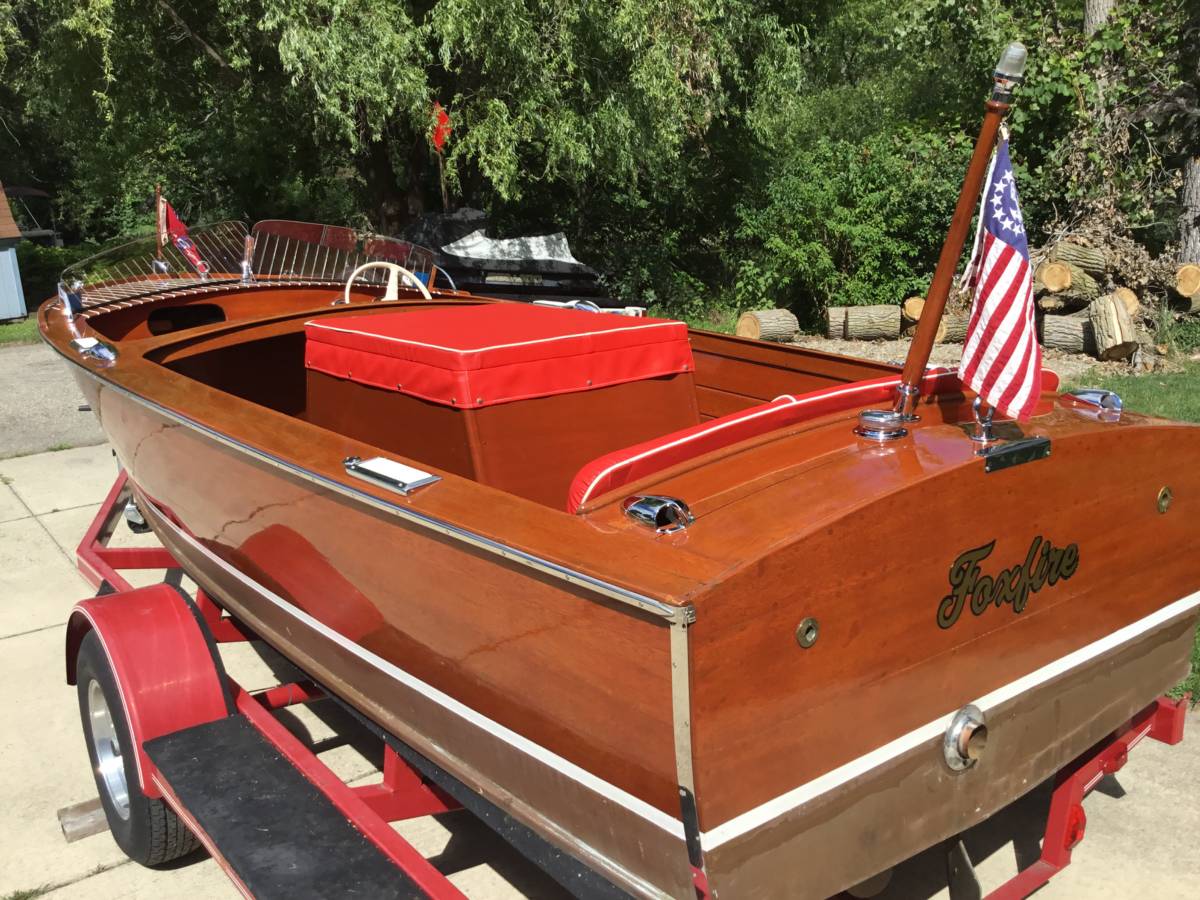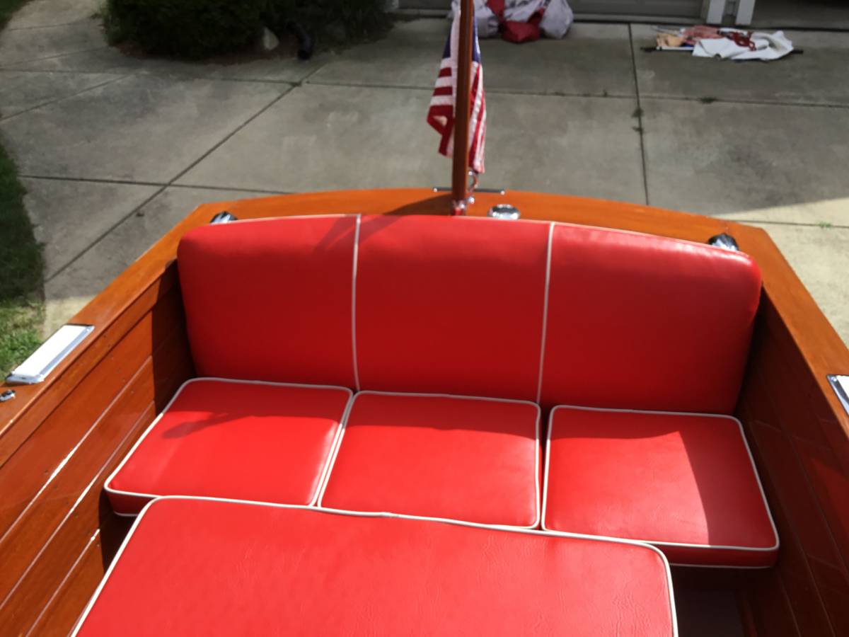 Award winning restoration: all original refinished mahogany interior and exterior, documented rebuilt KLC Chris Craft engine, 120 hp, 12v conversion, 5200 bottom, all refinished chrome, red with white trim like new upholstery. Always garaged and covered. Includes custom built Integrity trailer. Ready for immediate use!