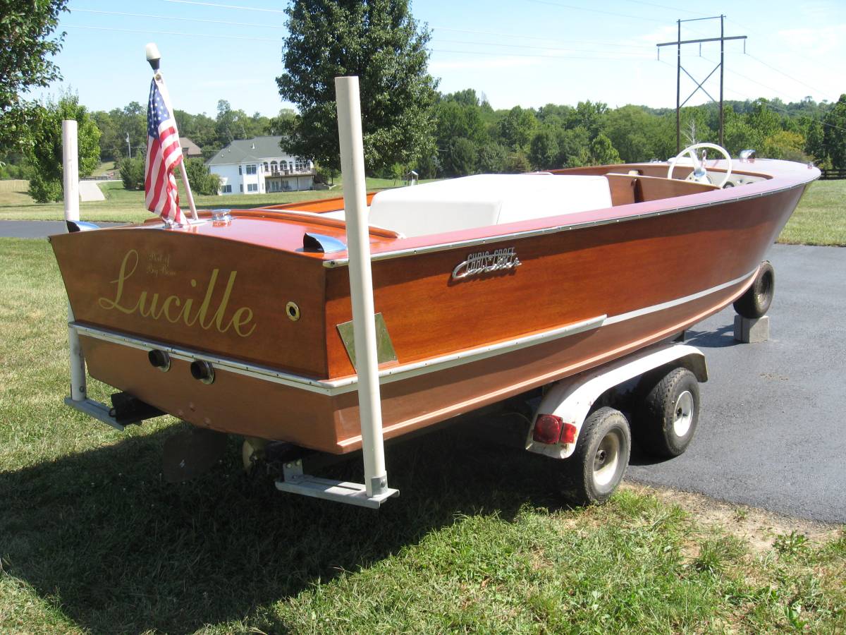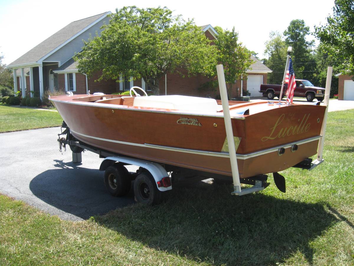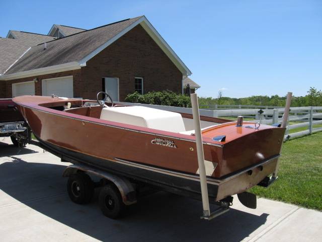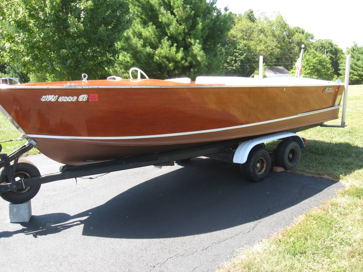 1961 Chris Craft Cavalier. 17 ft, mahogany plywood. 283 engine built to 327 specs. Dual axle trailer.Custom cover.
