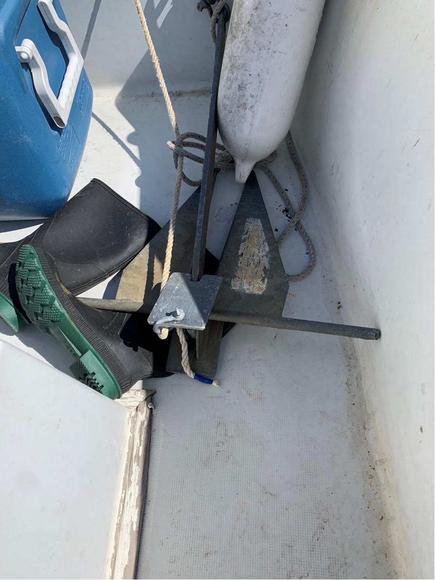 There are safety items, an anchor, no baitwell.