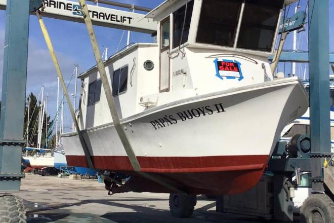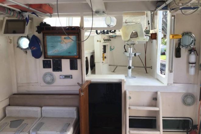 Fish boat pleasure. Fish duel station, Hydraulic steering,ss puller, Full hydraulics, Pressure wash down Electric 12 V wash down and live well Fill, Furuno radar 16 miles, depth soundersPPS, spare prop, anchor Rode, Bird house forward Great visibility PLEASUREV berth forward new cushions,Marine head with holding tank, Shelf storage plus under bunk storage, freshwater 30 gallons, main cabinfold down table in sette arrangement.. SinK, Freshwater pond, good size cooking area and countertop, forward steering wheel cushions, aluminum windows with screens.Caterpillar 300 H diesel.MUST SEE!