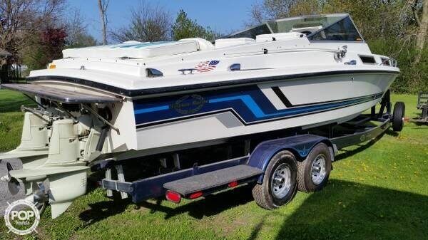 This boat is located in Glenwood, Illinois and is in great condition. She is also equipped with twin Holman Moody engines that have 1,000 hours.