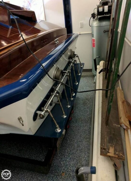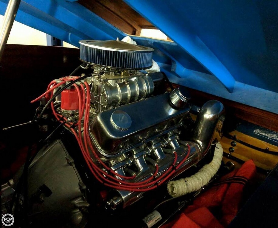 The boat was rigged by WPM racing in Corona CA. It has a 468 BBC with a roots blower, Casale V drive, Hughes 2 speed tranny, new interior.