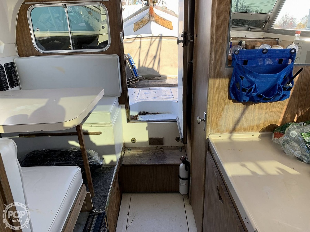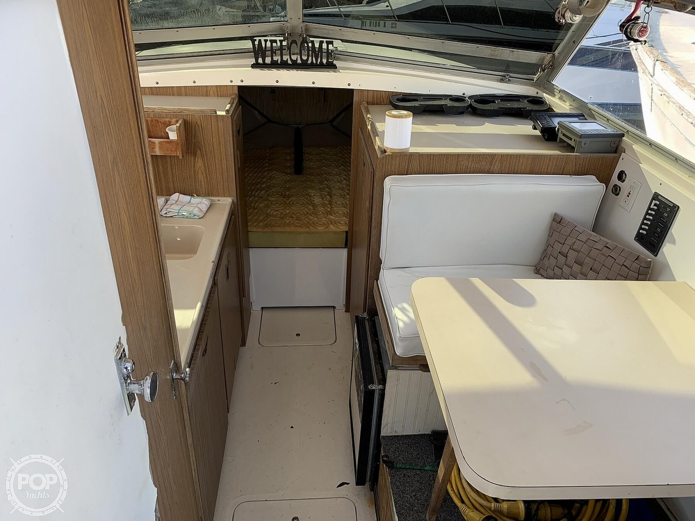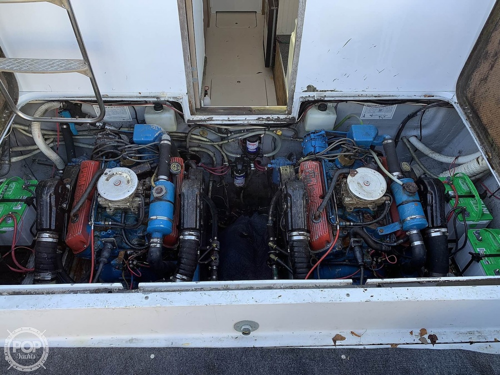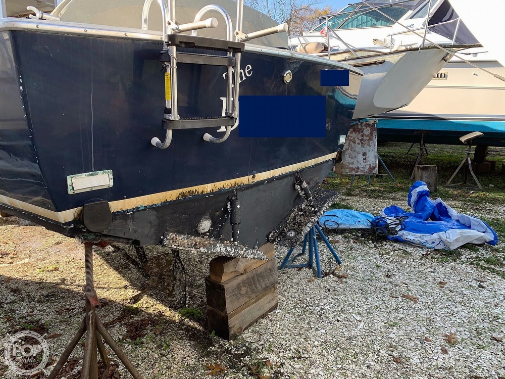 This boat is located in Bristol, Rhode Island and is in decent condition. She is also equipped with twin Pleasure Craft Marine engines.