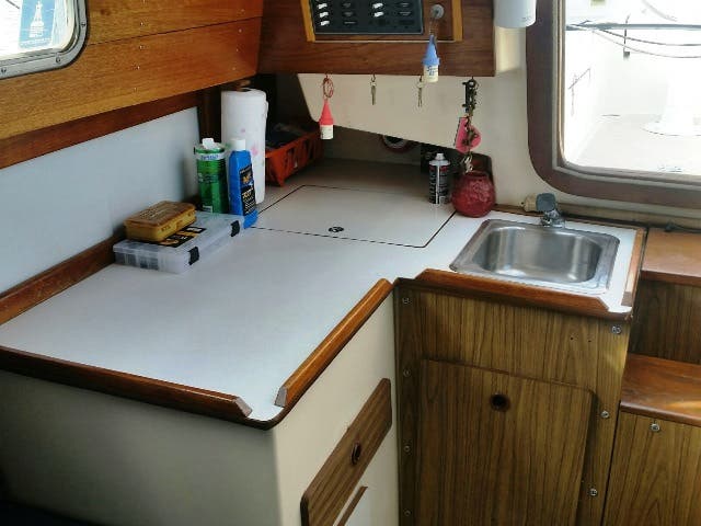 A very well maintained boat, older sail boat that has had much care over the years. Powered by an old reliable Atomic Four gas inboard.