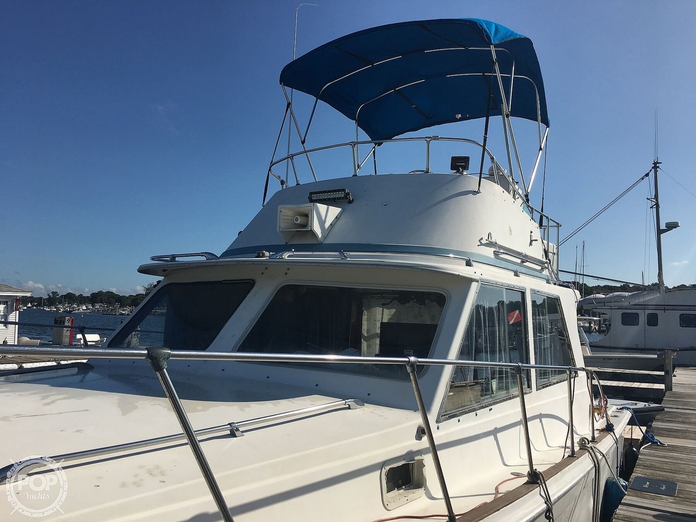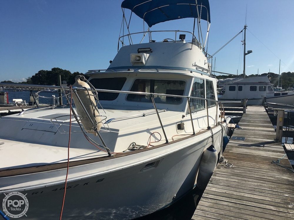 This vessel is located in Warwick, Rhode Island and is in good condition. She is also equipped with twin Mercruiser engines that have 350 hours.