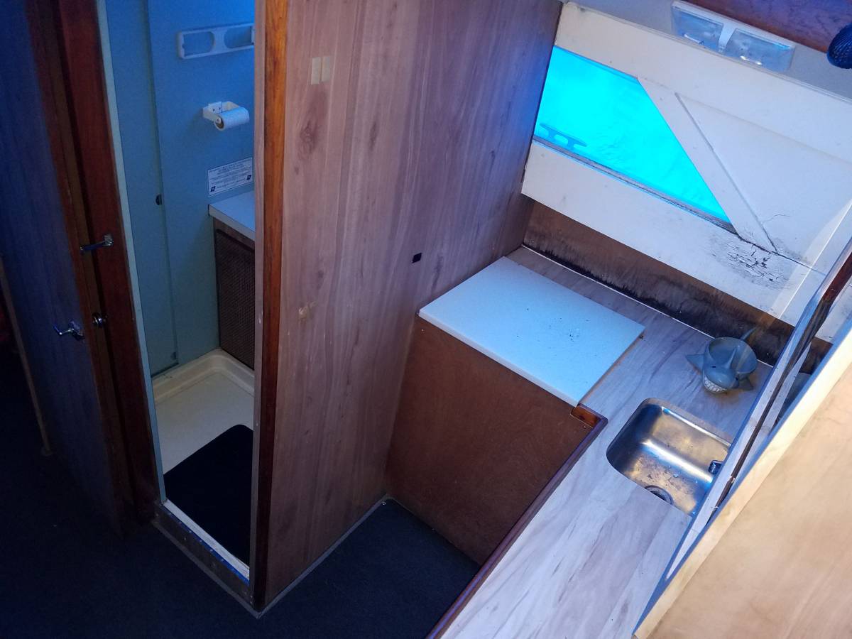 Boat only has basic amenities and here is why: We bought the boat in FL after it took on water in Hurricane Andrew in 1991. We repowered with the big blocks and removed the generator, stove, A/C and holding tanks to lighten the boat and because we didn't need them.
