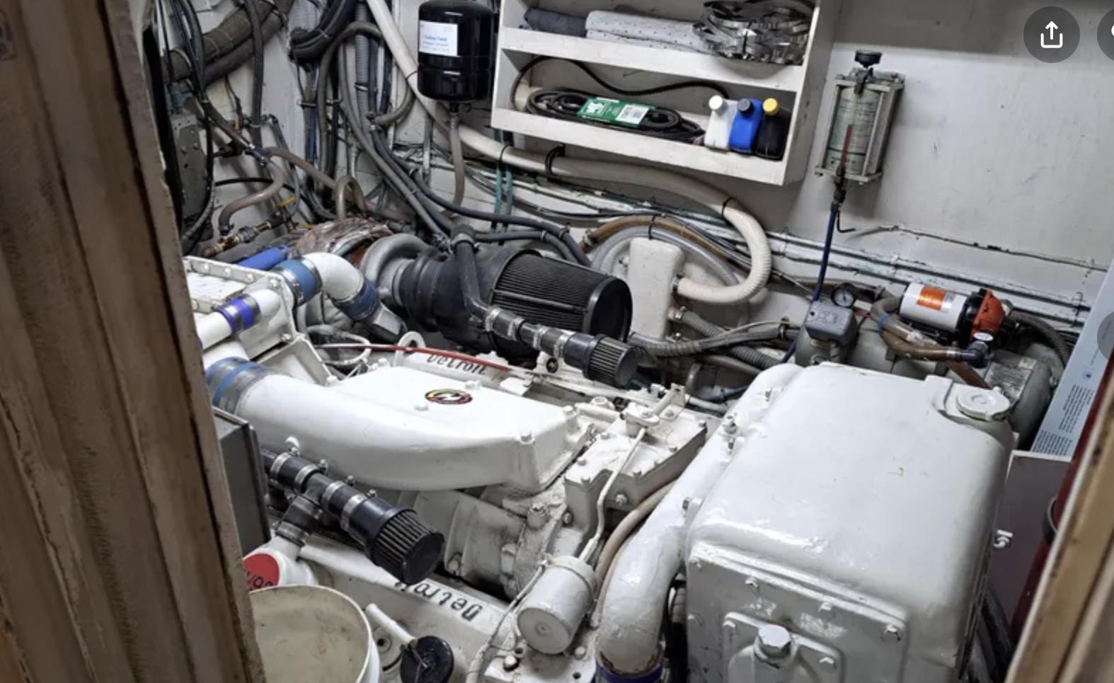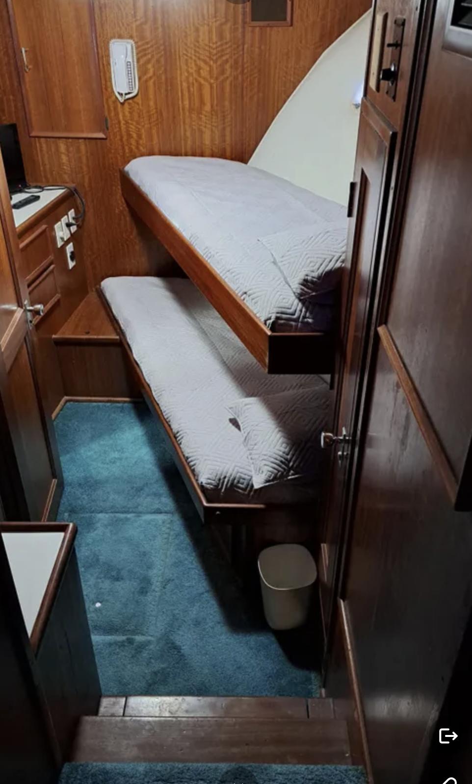 This yacht has been kept in fresh water, undercover for 20 years. Recently surveyed, bottom down, rudders and shafts repacked, fire suppression system rectified. Spent $15k.