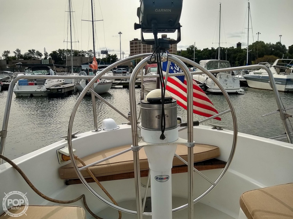 This sailboat is located in Cleveland, Ohio and is in good condition. She is also equipped with a Yanmar engine.