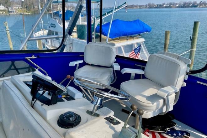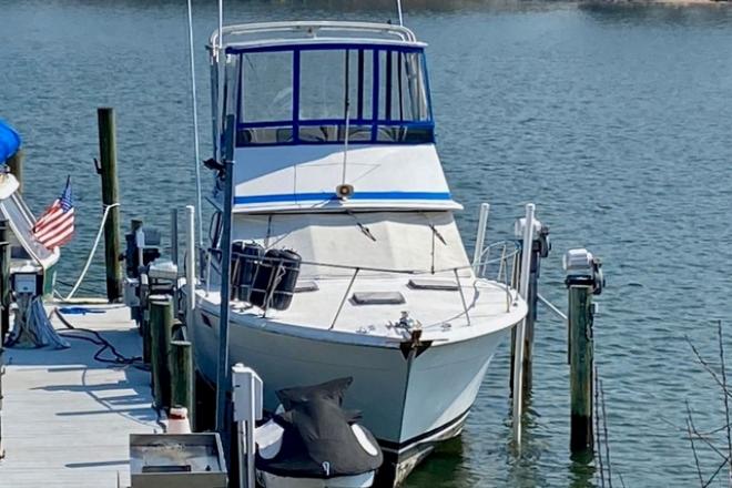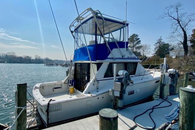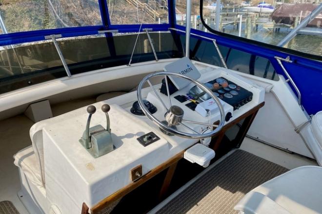 Yacht for sale is a 1978 TROJAN 36' "Duck Blind" F-36 Sport Fisherman Sport Fisherman in Glen Burnie, Maryland, United States. With a production run spanning two decades, the F-36 was one of Trojan's most popular models. Lift kept and repowered in 2006 with twin Mercruiser MX 6.2L MPI engines, Duck Blind is a great example of this popular boat and features many upgrades including, Garman touch screen chart plotter, 32" flat screen TV, flybridge hardtop with full enclosure, generator, electric marine head w/Raritan MSD, carpets and blinds ... the list goes on! Her current owners have moved on to a larger boat, so Duck Blind is available and ready to take her next owners out for a good time on the water. She's an ideal boat for fishing, water sports and cruising the Chesapeake and beyond.