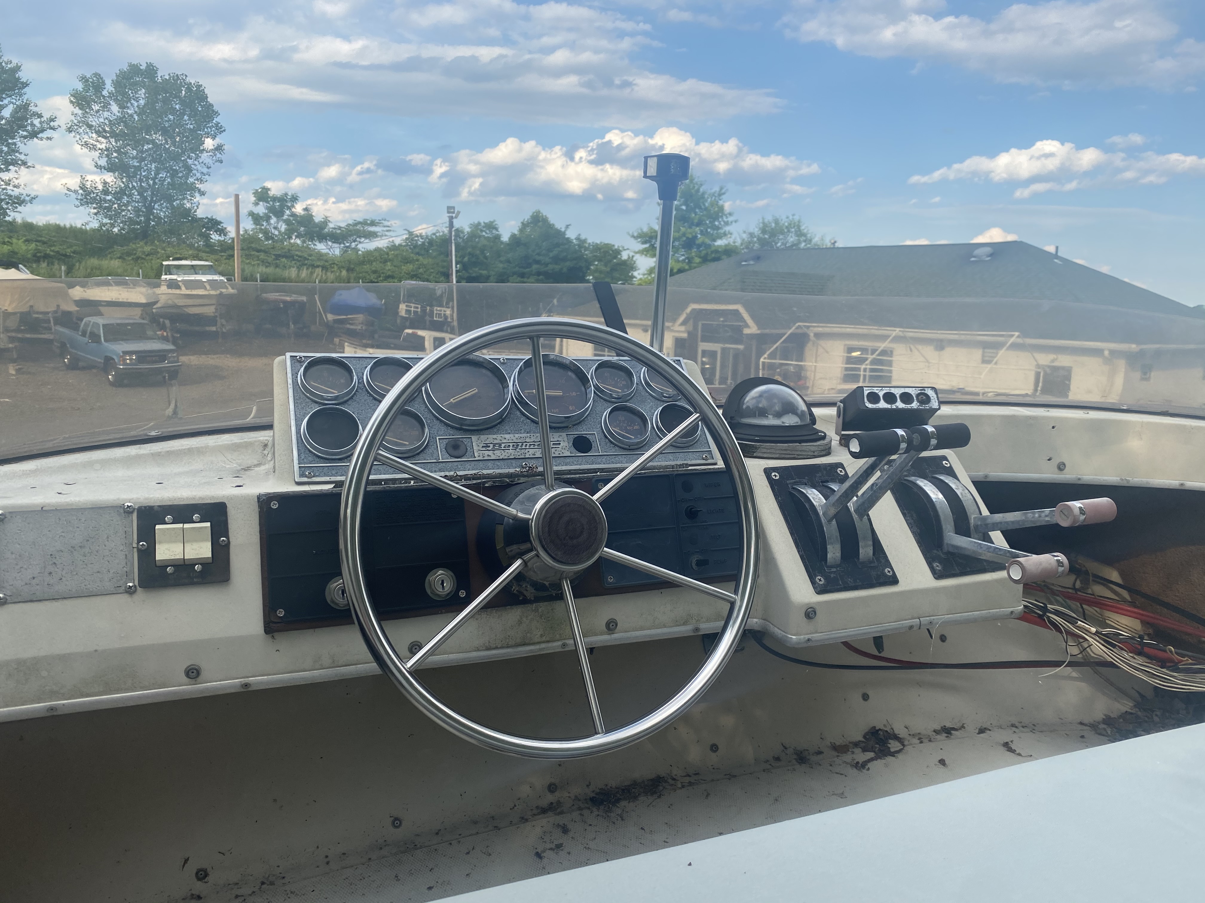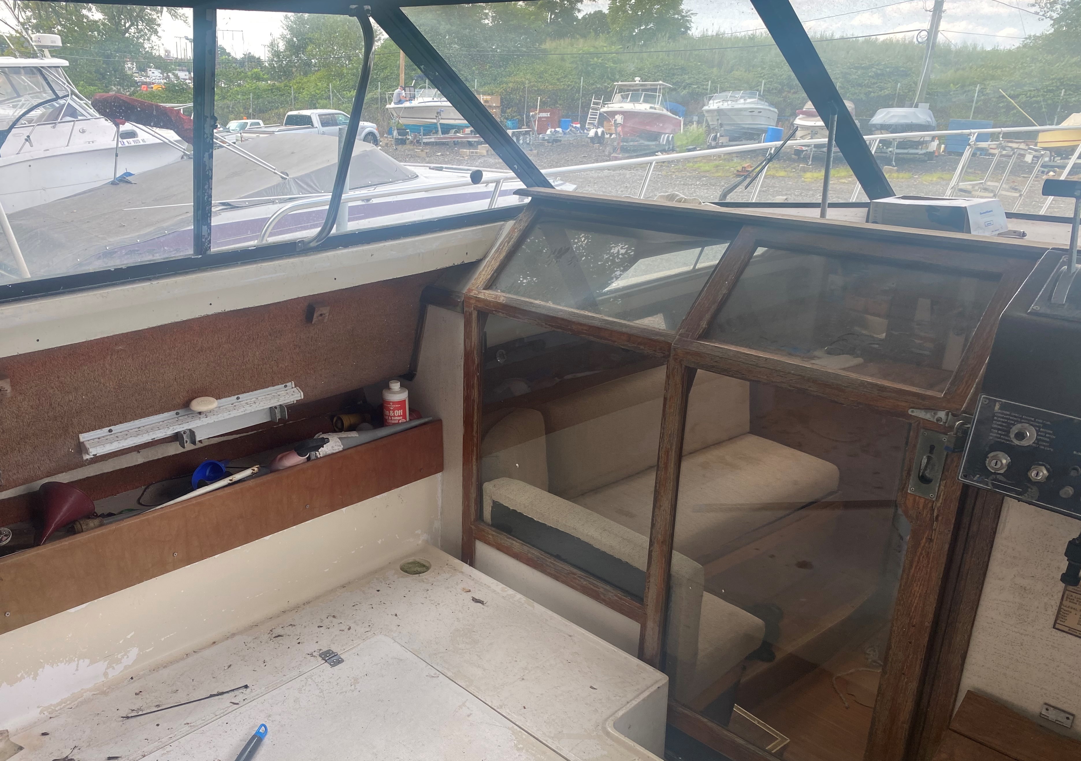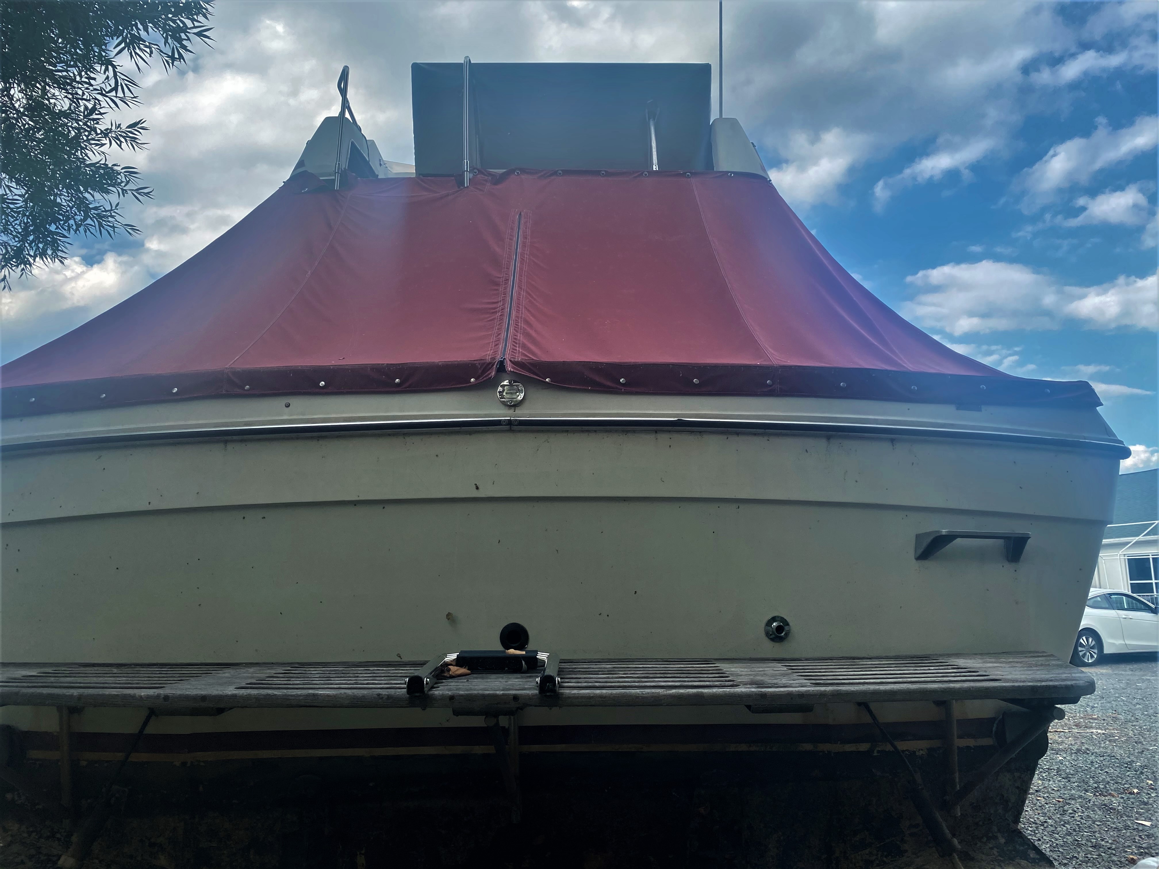 1979 Bayliner with flybridge. Boat has twin straight inboard 350 crusader motors that we repowered about 10 years ago. Both engines have under 150 hours on them. Clean cabin with hatchback boat cover. This boat is currently on land but is ready to drop in the water. Great cruiser boat for the whole family