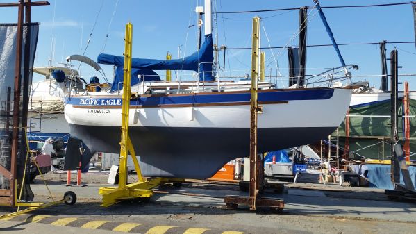 A rare find, less than 10 built. Perfect singlehanded cruiser, Long Beach sistership circumnavigated singlehanded. Airex cored hull, teak decks removed and deck glassed, Awlgrip over entire boat, bulkheads glassed in. This is not a liner boat. Perfect cruising underbody, full keel with cutaway forefoot and skeg hung rudder with prop protected inside skeg.