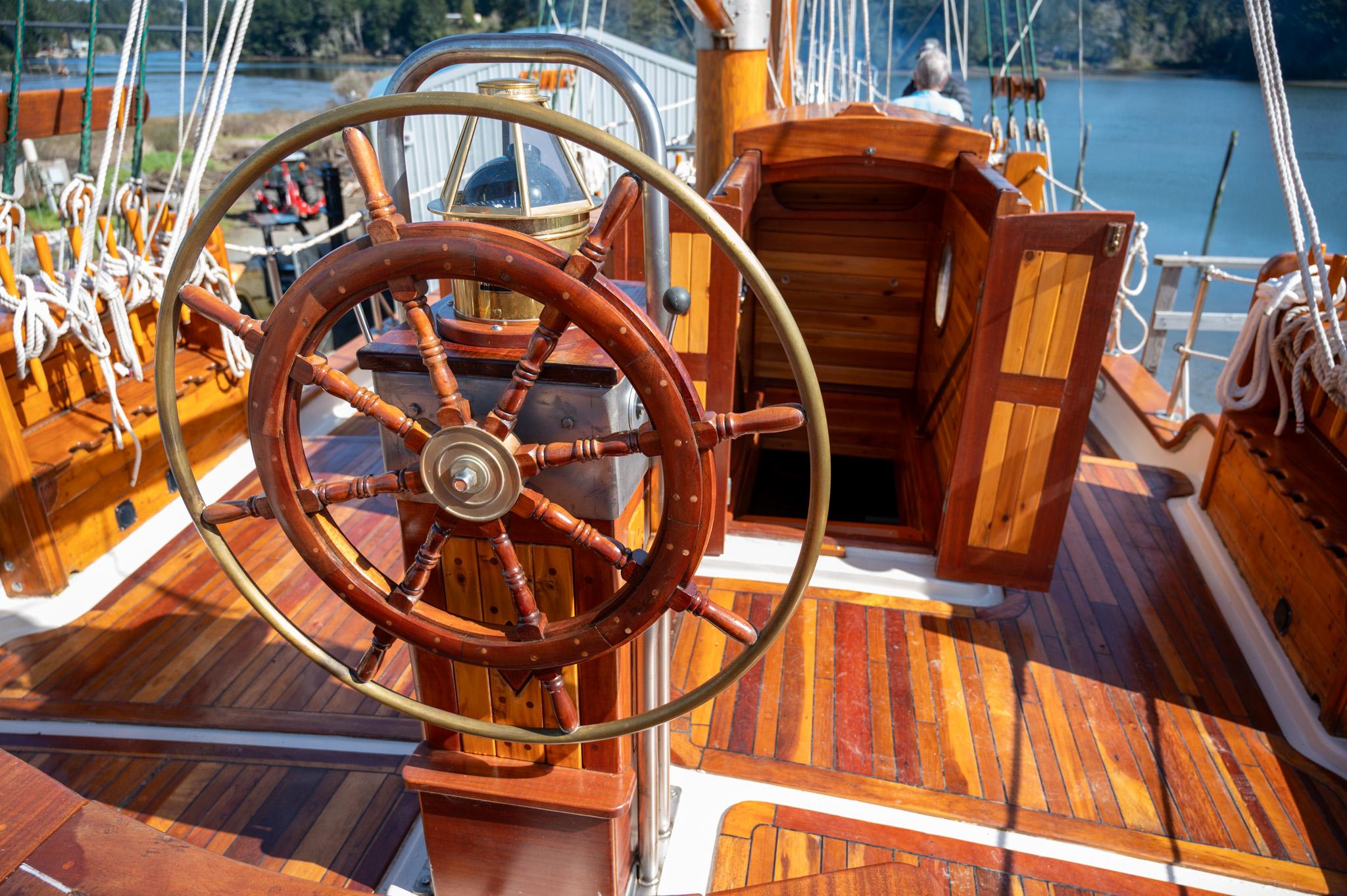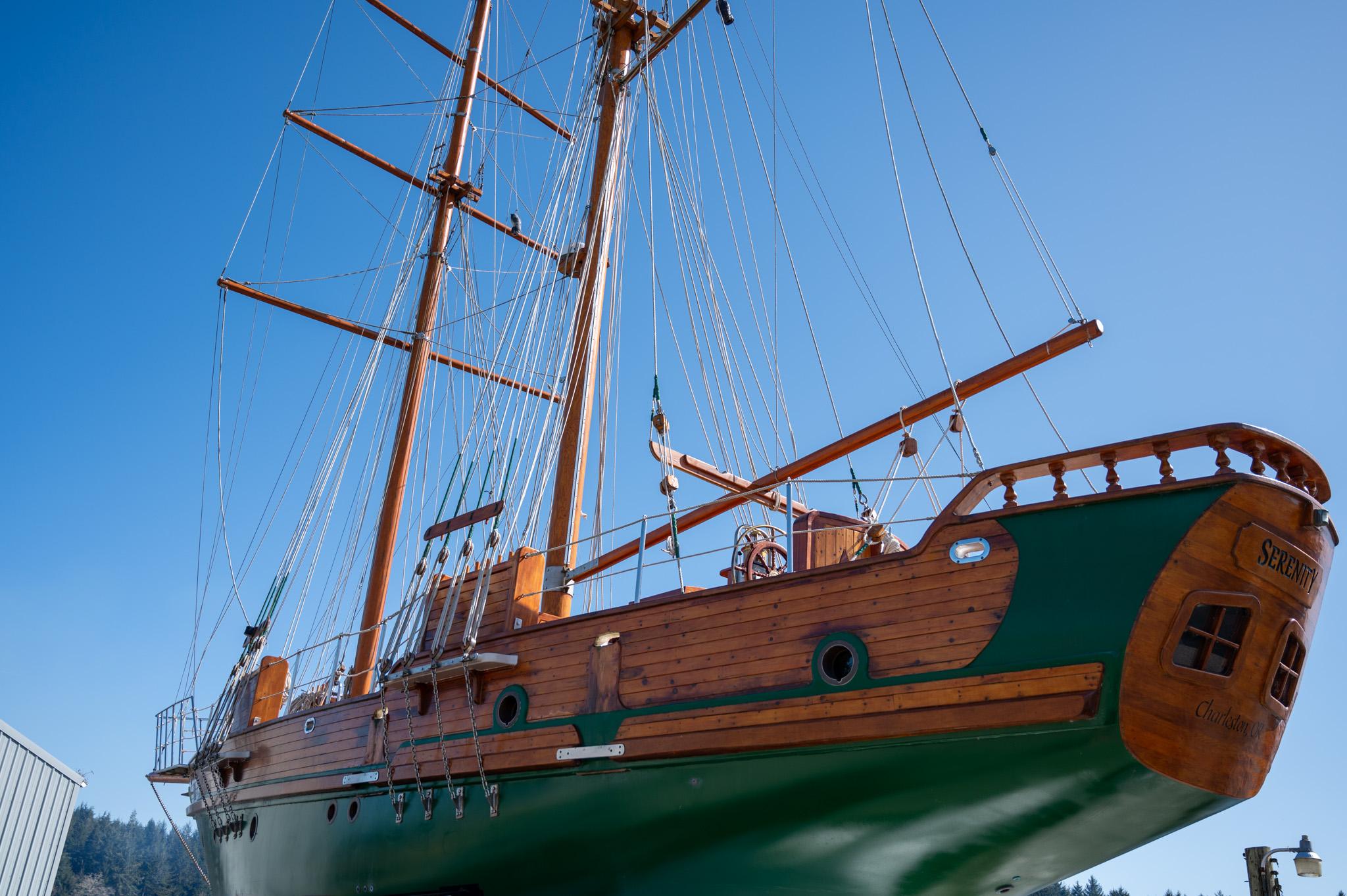Serenity is a classical rigged brigatine built on a fiberglass hull. Starting with her Islander 55 hull, we built Serenity over a 10-year period in the Charleston Oregon shipyard. Built to the highest standard, 66’ LOA. Ship like topside, she is custom all the way. Below are 2 staterooms, 2 heads with showers, and actually includes a washer/dryer unit in the laundry area. Her John Deere 4045, engine has been fully rebuilt with less than 10 hours run time. Serenity has a roomy main salon and large galley (with full sized refrigerator). All new navigation equipment, modern electronics, and sails (9). Only thing missing is the cannons. Truly must see to appreciate! Located in Brandon, OR.