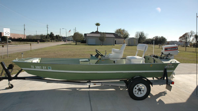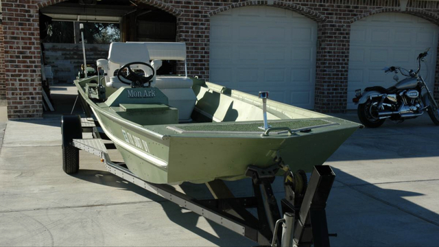 1981 Monark 16' Jon Boat with 25hp Johnson side console.