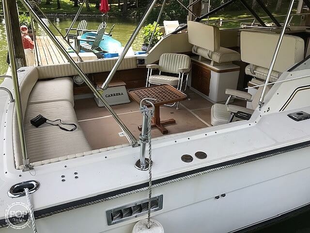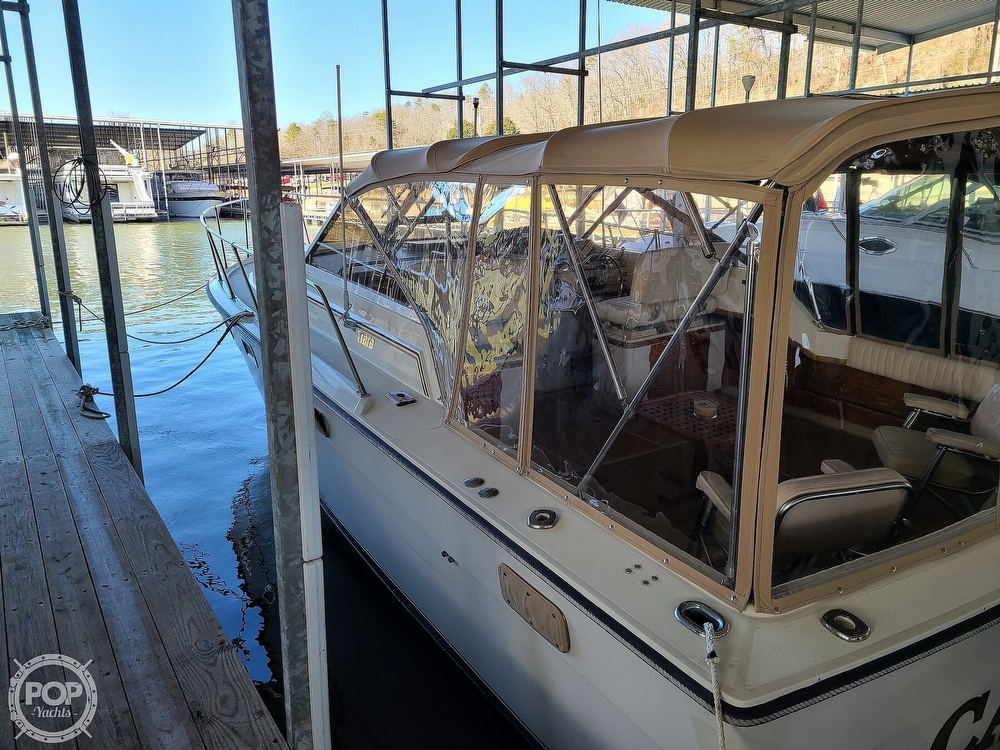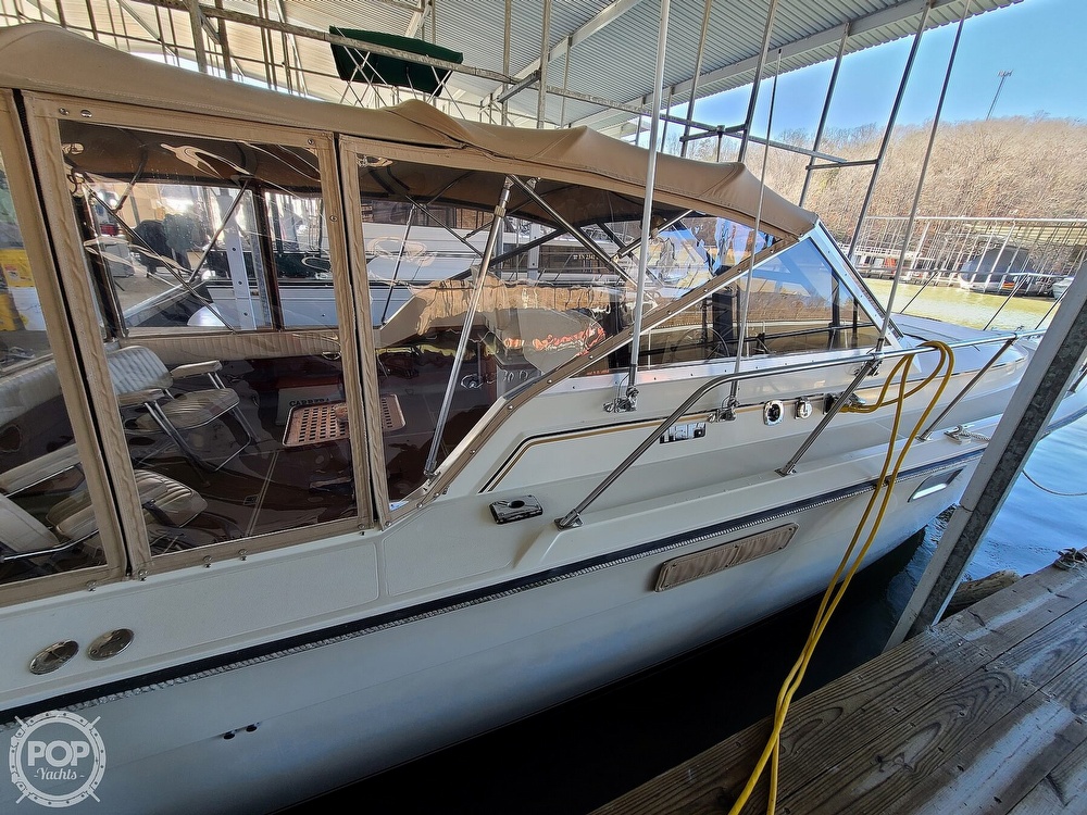 This boat is located in Harriman, Tennessee and is in great condition. She is also equipped with twin Crusader engines that have 1,049 hours.