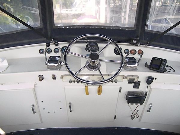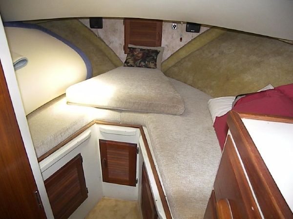 Powered by twin Crusaders, she can comfortably cruise while you entertain on the flybridge. Galley up design with a large double vee berth in the forepeak and a roomy salon/dinette. Ideal for a couple for a summer adventure!