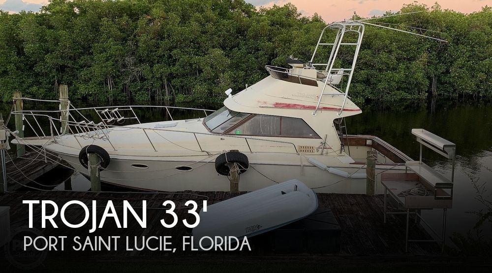 If you are in the market for a sportfish/convertible boat, look no further than this 1982 Trojan 10 Meter International Sedan Flybridge, just reduced to $34,500 (offers encouraged).