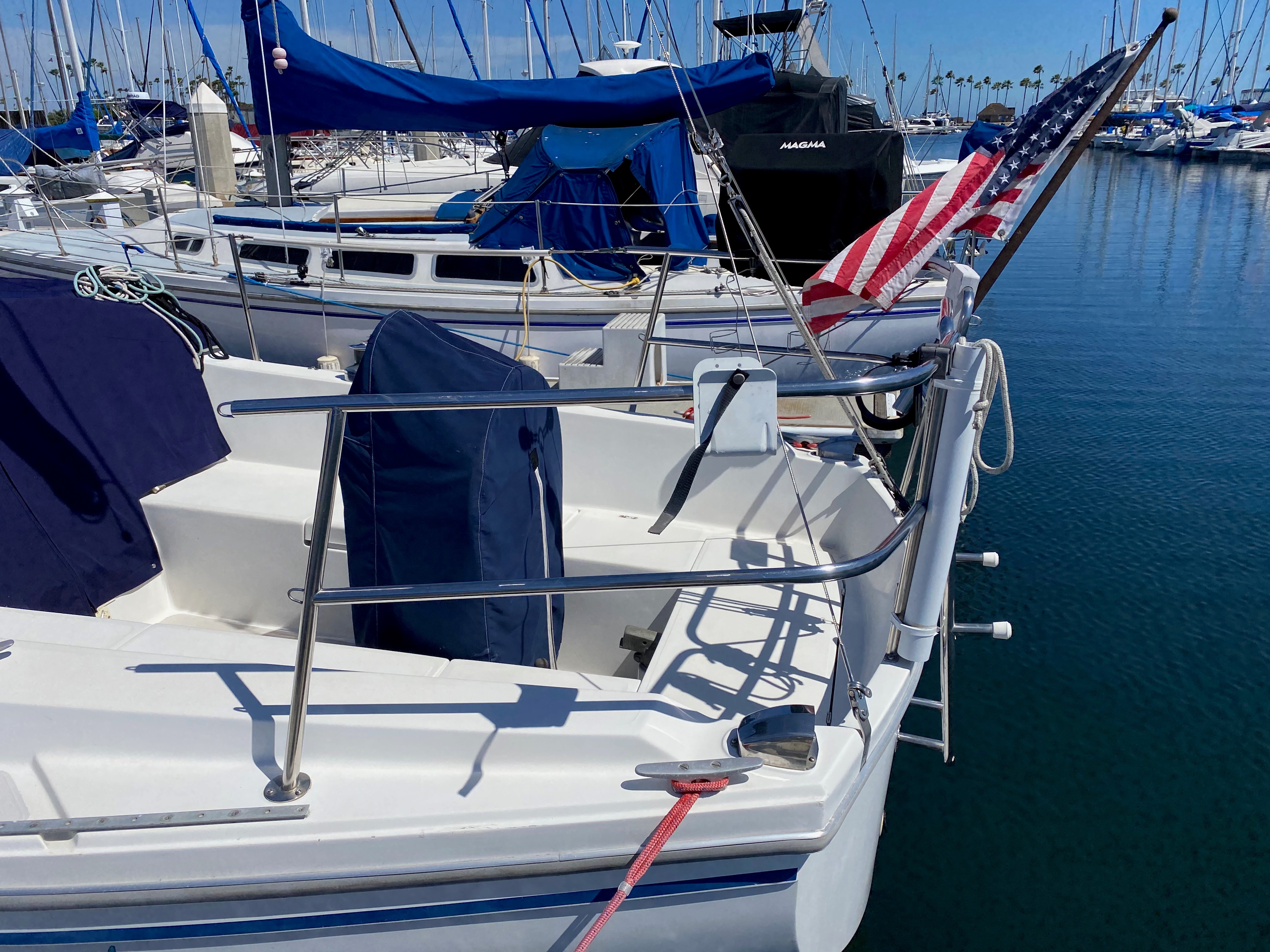 This boat is super clean and has had everything done you would want. Rigging standing and running new sails, head, rebuilt engine, water heater, main winches, upholsery including new foam and more.