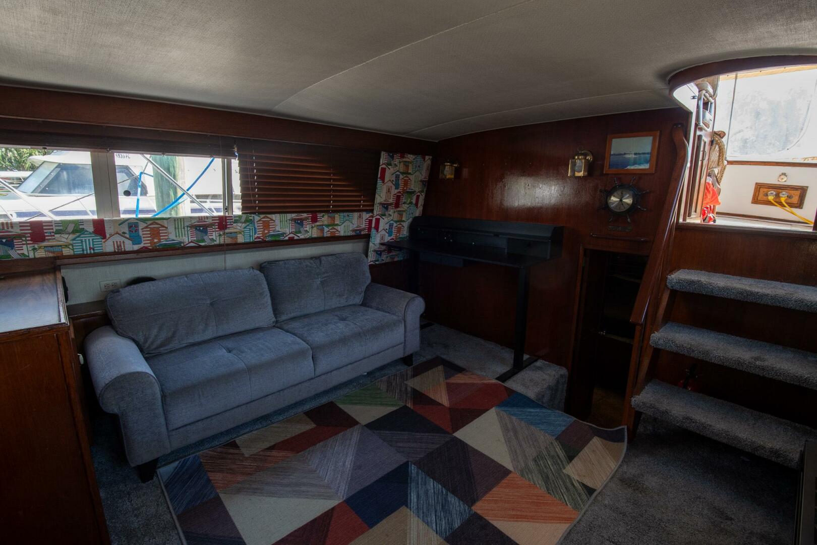 With over 50 years of boat building and design experience, Egg Harbor Yachts have earned and maintained their status in the marketplace as "World Class."Clean, fast, maneuverable and classic, this 40' Yacht displays all the traditional Egg Harbor strengths and beauty.The 40 Egg Harbor Motoryacht was one of the last of the classic flush deck motor yacht designs built by a major U.S. manufacturer. A practical and straightforward cruising yacht, her spacious 2 stateroom interior layout is centered around a salon that seems larger than it's dimensions might suggest. An enormous U-shaped galley is down from the salon level to port. Forward of the head is the day/guest head and in the bow is the guest stateroom with vee berths and lots of storage. There is a built-in stackable washer/dryer aboard and the aft Master features a walkaround queen, a full walk size hanging locker, built in drawer storage and a spacious head with stall shower. Topsides, the fully covered aft deck is large enough for entertaining a large party, the aft deck helm station featured a center line helm, good storage, chart area and built in electronics storage overhead. There are wing doors to wide side decks and a ladder from the aft deck accesses the flybridge and the bridge station is centerline with helm seat and companion bench seats to port and starboard. The bow foredeck features a molded in seat forward of the salon forward windshields. A handsome and sleek side profile makes her modern looking but with a classic flush deck motor yacht style. ed interior with comfortable accommodations and ample living space. The layout is practical and comfortable, making it perfect for extended stays on the water. Above deck, the Egg Harbor 40 features a sleek and timeless design. It is powered by Crusader engines, navigation technology, and quality amenities and's well-equipped for cruising and entertaining.Please Note: This vessel is sold as is and by the owner, without any promises regarding condition or maintenance. The above description is based on the information provided by the owner and the manufacturer. We recommend that prospective buyers perform a comprehensive inspection before purchase.