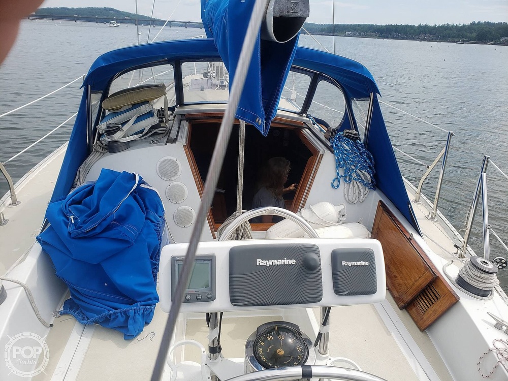 This sailboat is located in Wiscasset, Maine and is in good condition. She is also equipped with a Universal Atomic 4 engine.