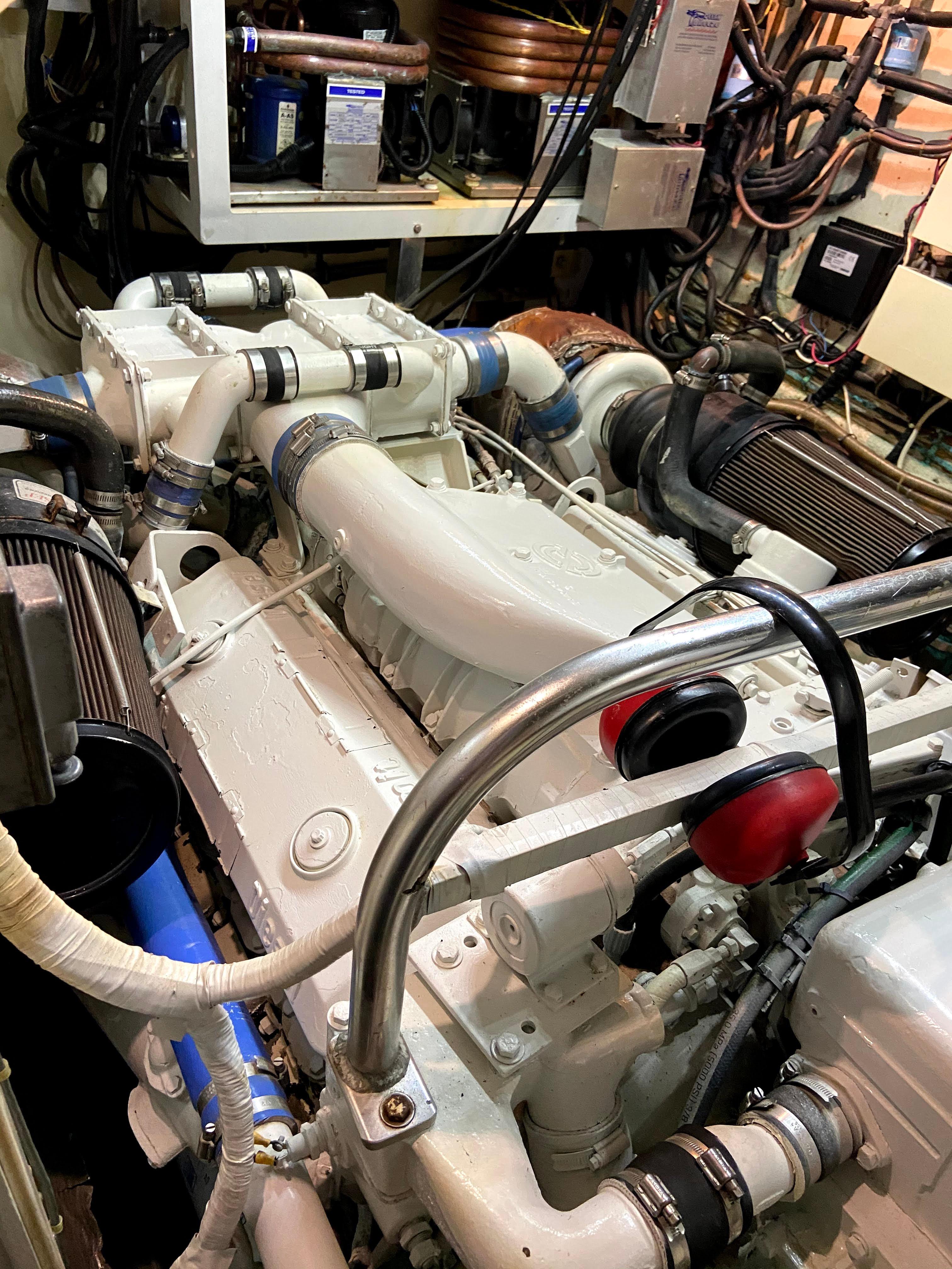 In the Last 24 Months: New 15kw Westerbeke Generator, New Generator Exhaust System, New Raycor Generator Diesel filter, Three New 871Ti Turbos ( 2 on starboard and outer turbo on Port Engine), New Port & Starboard battery banks, New Thruster Motor, Rebuilt Water-maker, New High pressure pump and salt water feeder pump for Water-maker, Two New and One rebuilt toilet pumps, Rebuilt freshwater pump, New galley & twin room AC blowers, New galley AC control Panel, New AC Saltwater Cooling Pump, Main Fire Extinguisher CO Tank re-certified, New Wench clutch, New Davit cable and Control Pendent, Inverter Power rewired in Forward Salon, New galley AC control Panel, New 100 LB & 75 LB Anchors for living on the hook, Two New Ship to Shore Radios, New Swimming platform, Serviced Stabilizers, New dinghy motor, December 2023 New Raymarine Charts, Two New refrigerators, New Microwave/Oven, New Garbage disposal, Refurbished Teak in Aft Salon, New Carpeting in Forward Salon and All Staterooms. Price reduced - very motivated seller