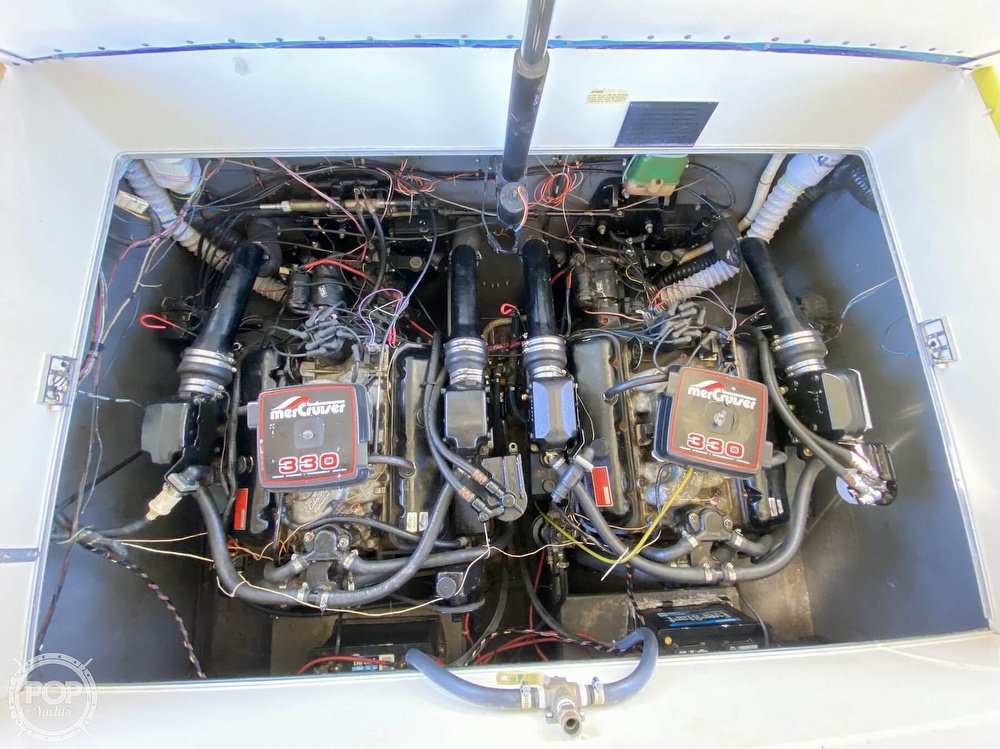 This vessel is located in Flagler Beach, Florida and is in good condition. She is also equipped with twin Mercruiser engines that have 493 hours.