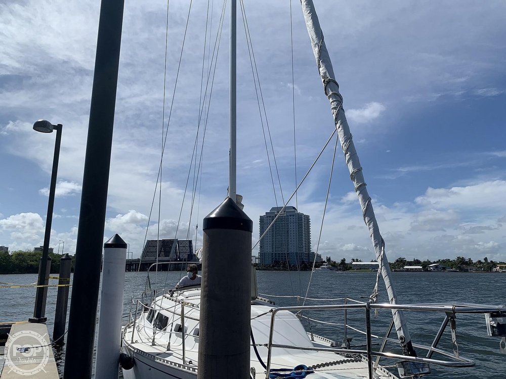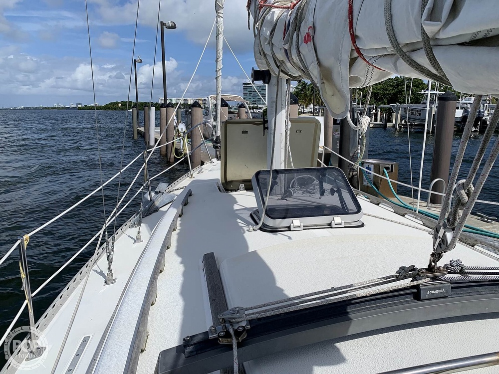 This sailboat is located in Miami, Florida and is in good condition. She is also equipped with a Yanmar engine.