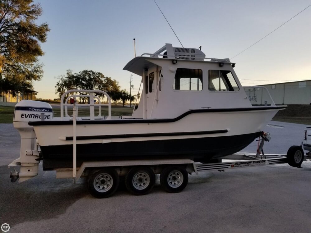 1985 MONARK 23 ALUMINUM COMMERCIAL FISHING PILOT HOUSE EVINRUDE 225 TRAILER INCLUDED