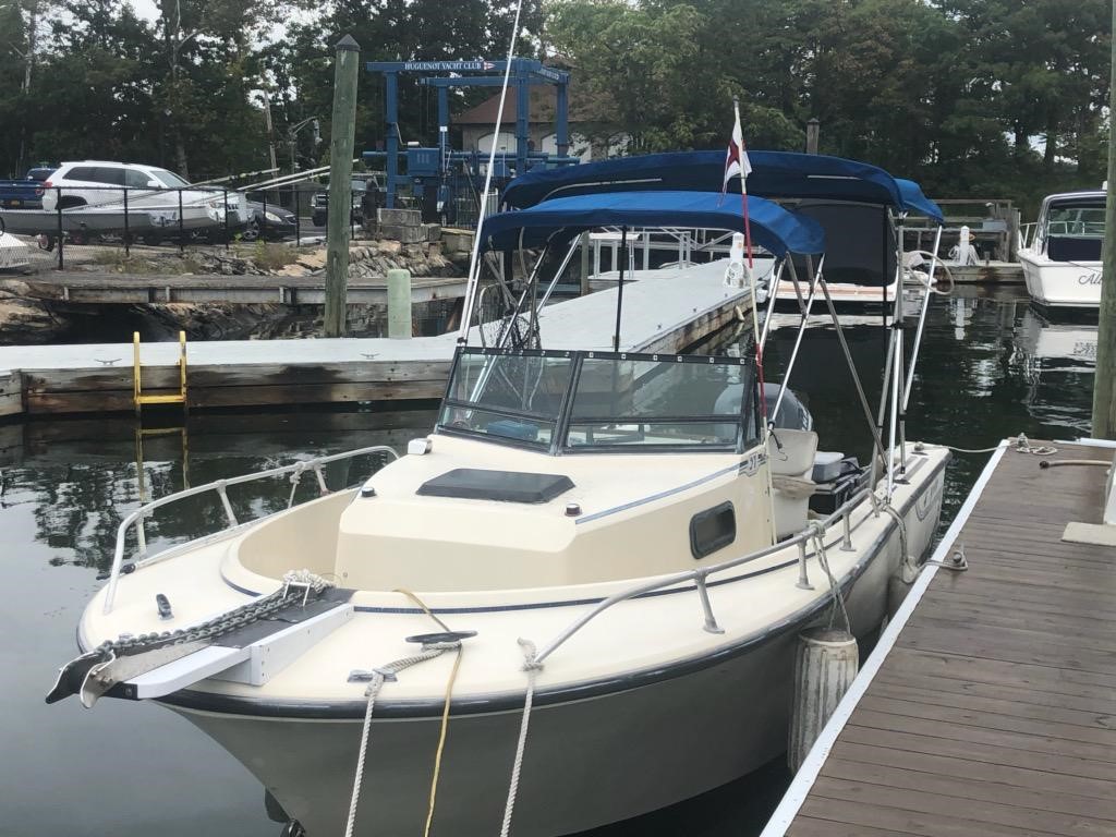 21ft. 1985 Proline with trailor--1983-200 HP Yamaha engine--WALK AROUND deck model--new Standard Horizon VHF radio--new interior cushions--new interior red/white light--Garmin color EchoMap GPS--anchor pulpit and chain guide and ball--new lower unit gear case pump and fresh lubricant--all new led navigation lights and new horn work well--two new SUNBRELLA bimini overhead sun canopies--strong battery & battery charger--AM-FM radio with CD player--New (RULE) bilge pump with auto/manual switch--new fuel filter--2Gal.of Yamaha engine oil & 3Gal.spare gas tank--USB charging ports & night light outlet sockets--all lines in good condition--fire extinguisher & flare kit- four new adult life vests--fenders & first aid kit- anchor and chain swivel included. KEY READY FOR THE WATER !!!