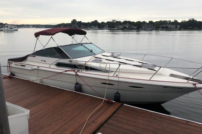Hull completely wet sanded and buffed, stored indoor, neat seats, new starters, new fuel pumps, low hours used fresh water, new Bimini top,sanded bottom and new paint on bottom and boat ready for use immediately.