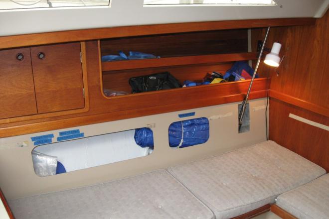 SUMMARY:This is a stout boat built in Canada, Ontario on the Lake, with a beautiful and functional interior for cruising and a hull design for racing as well. The deck construction and placement of all hardware is through solid glass so one does not have deck delamination. Excellent construction. Fresh water boat , Lake Michigan boat only.