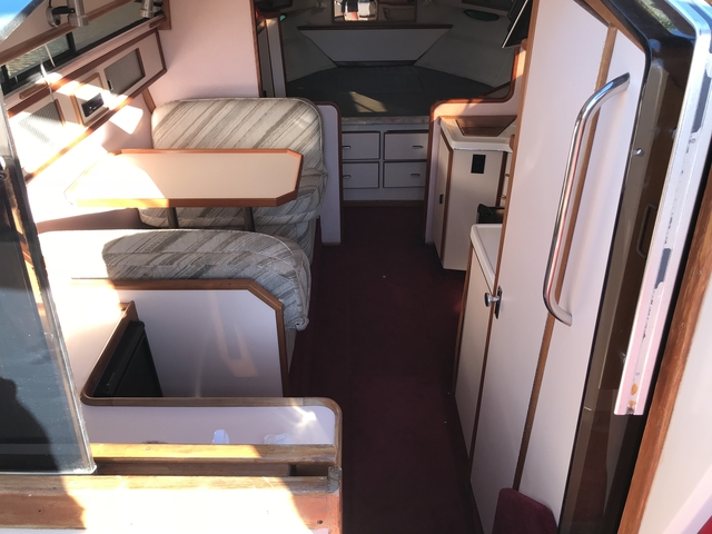 Also includes High End AM/FM/CD Stereo Sound System, TV, DVD Player, radar, GPS, fish and depthfinder, radar arch, carpeting, full galley with stove, refrigerator, H&C water, head, shower, sleeps 6, lots of storage, 3 bilge