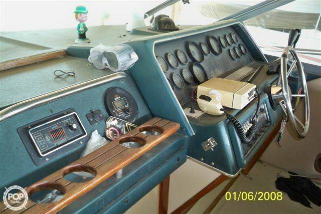 This boat is located in West Point, Mississippi and is in decent condition. She is also equipped with twin Mercruiser engines that have only 50 hours.