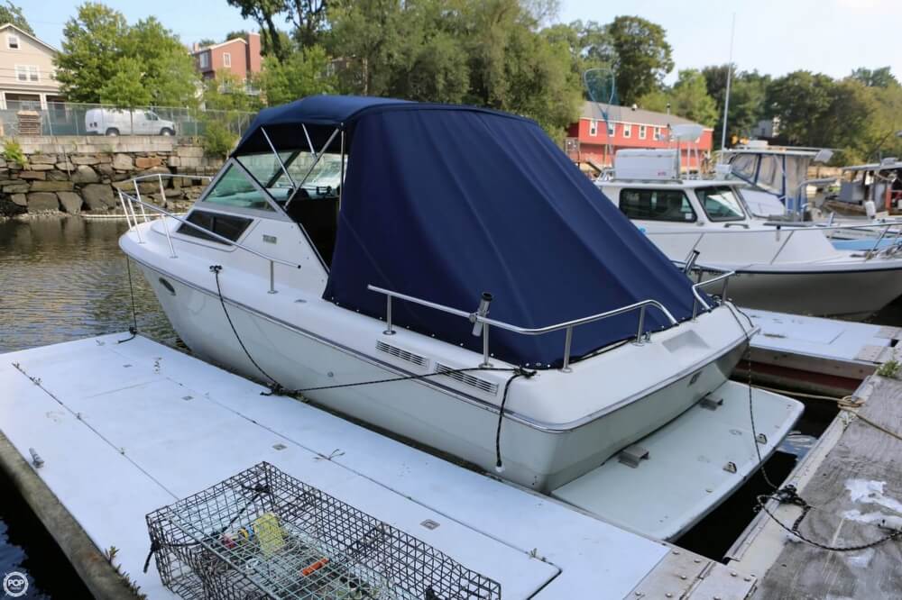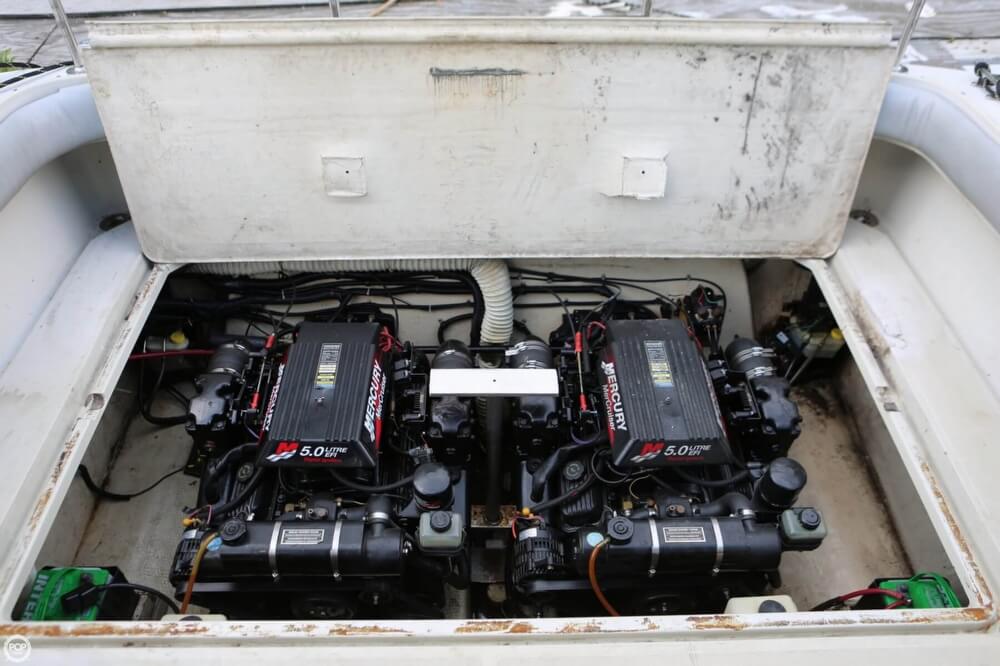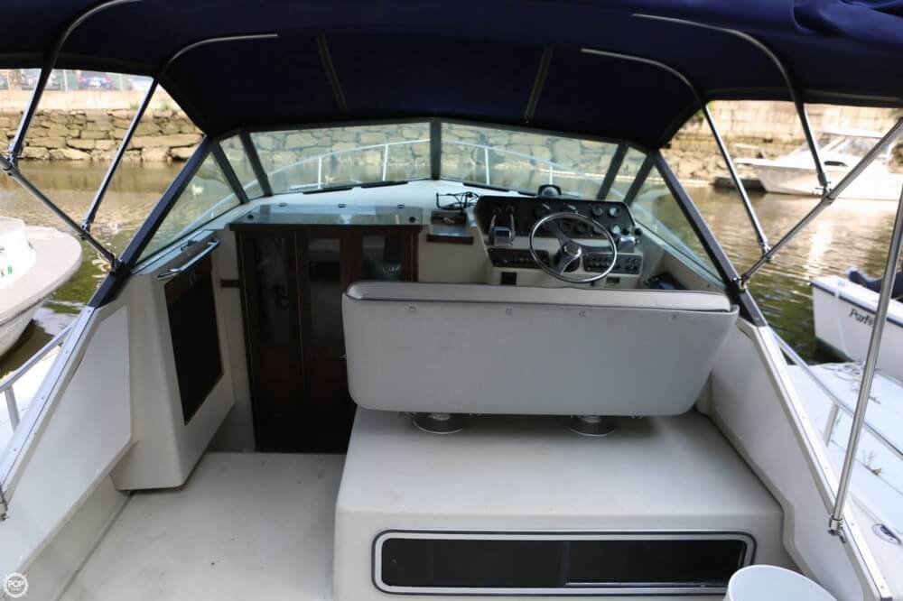 This boat is located in Port Chester, New York and is in good condition. She is also equipped with twin Mercruiser engines that have 800 hours.