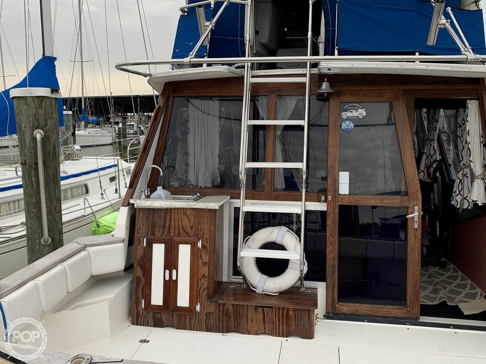 This vessel is located in Galesville, Maryland and is in good condition. She is also equipped with twin US Marine engines that have 500 hours.