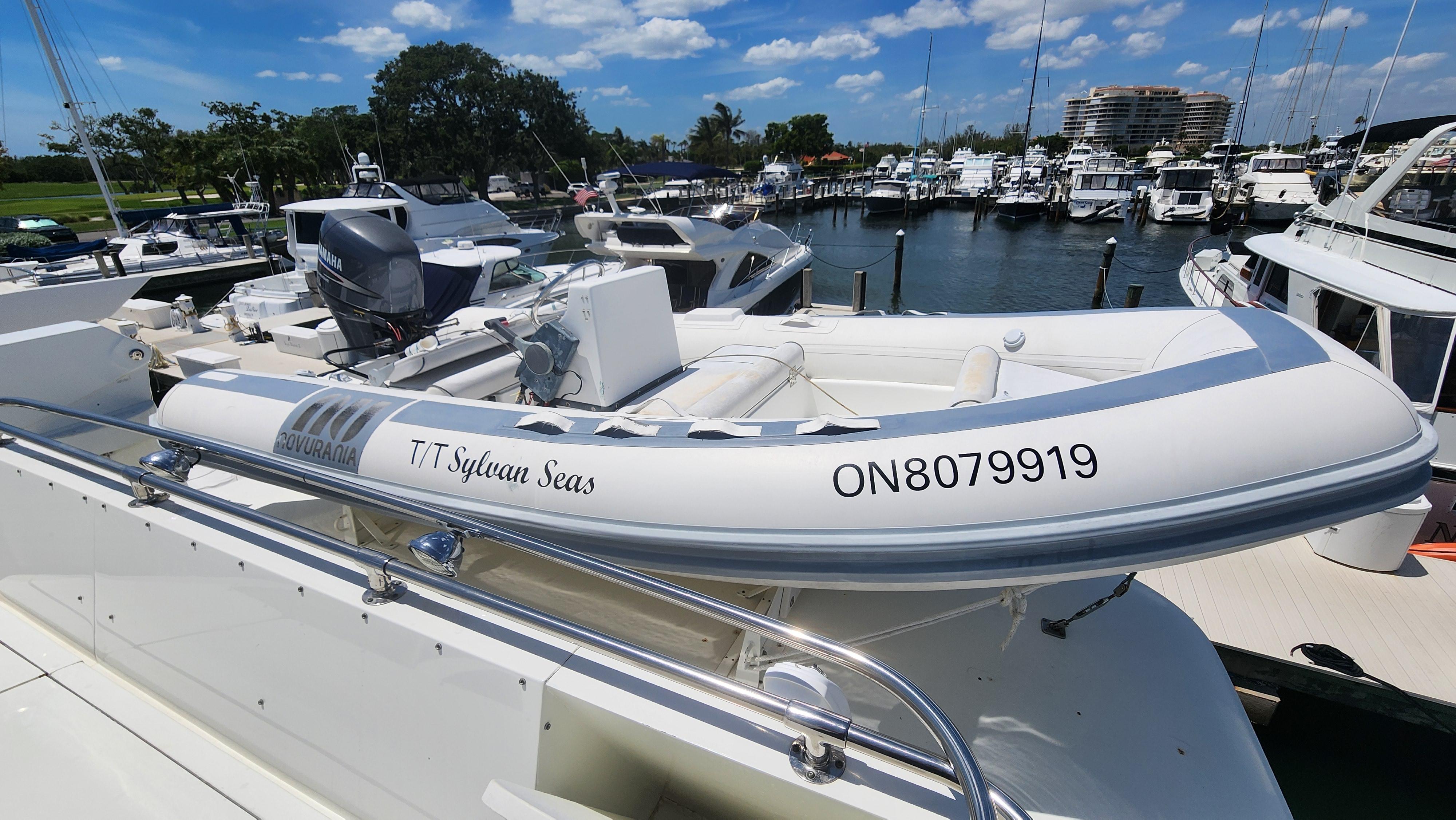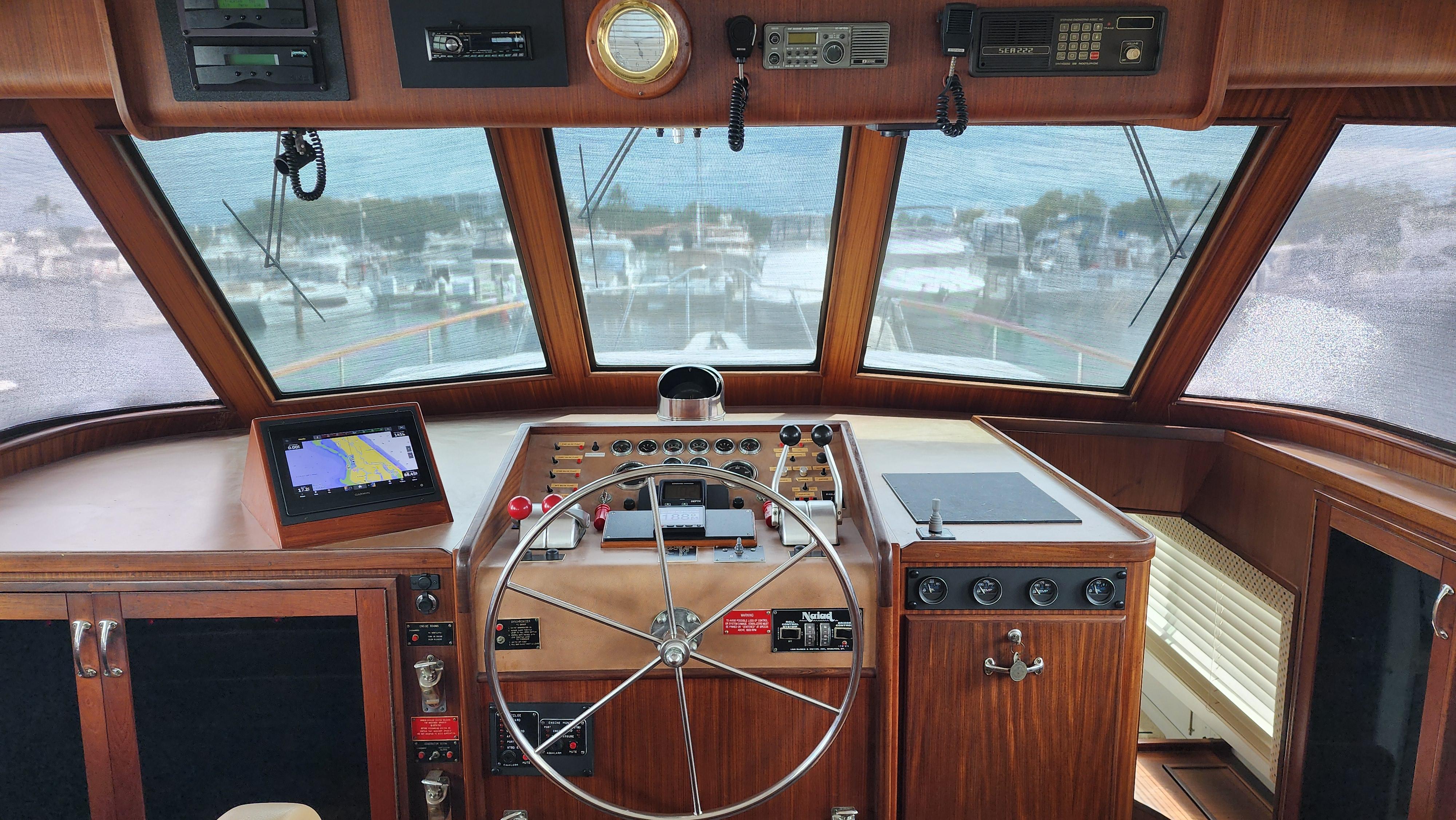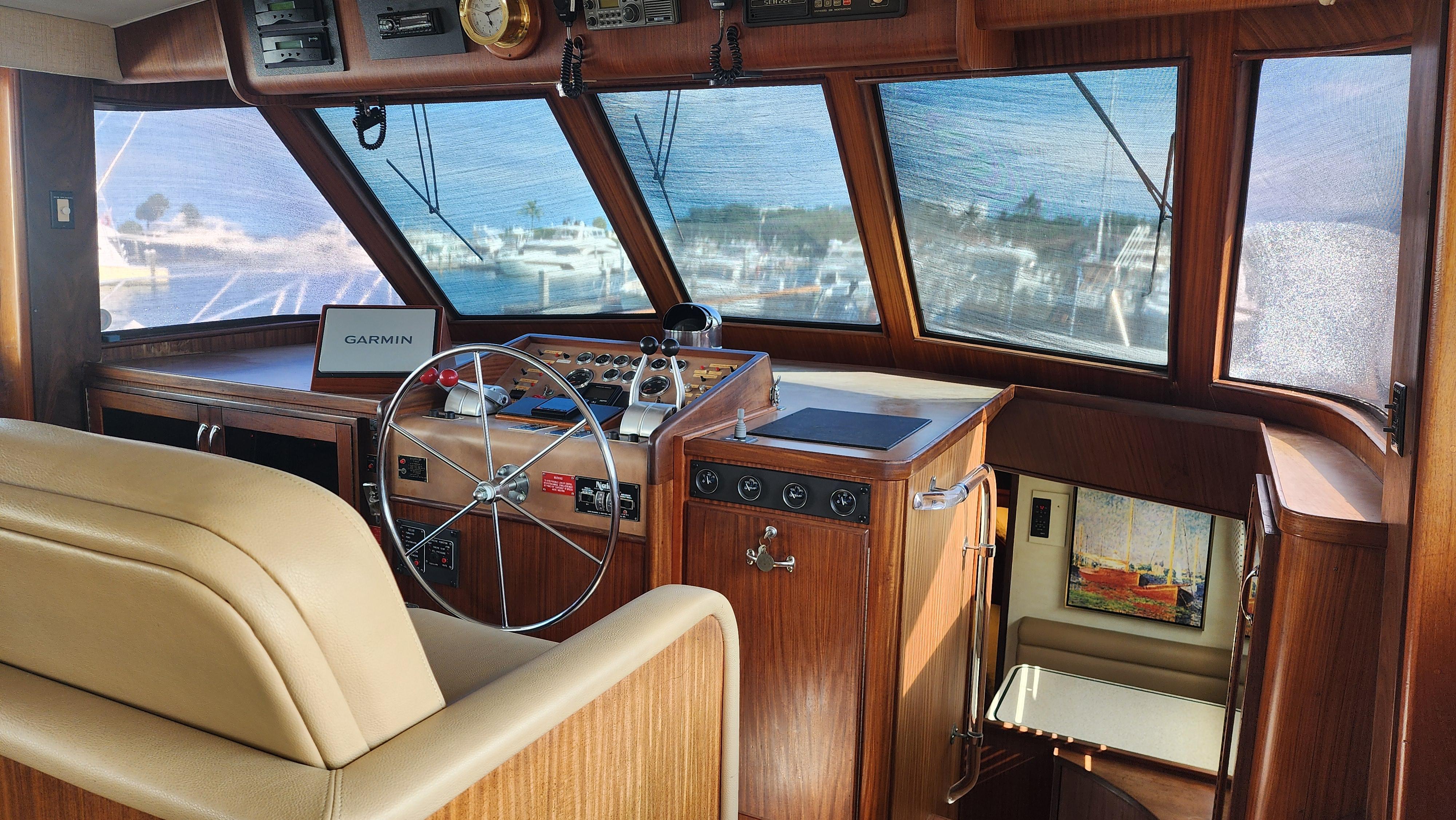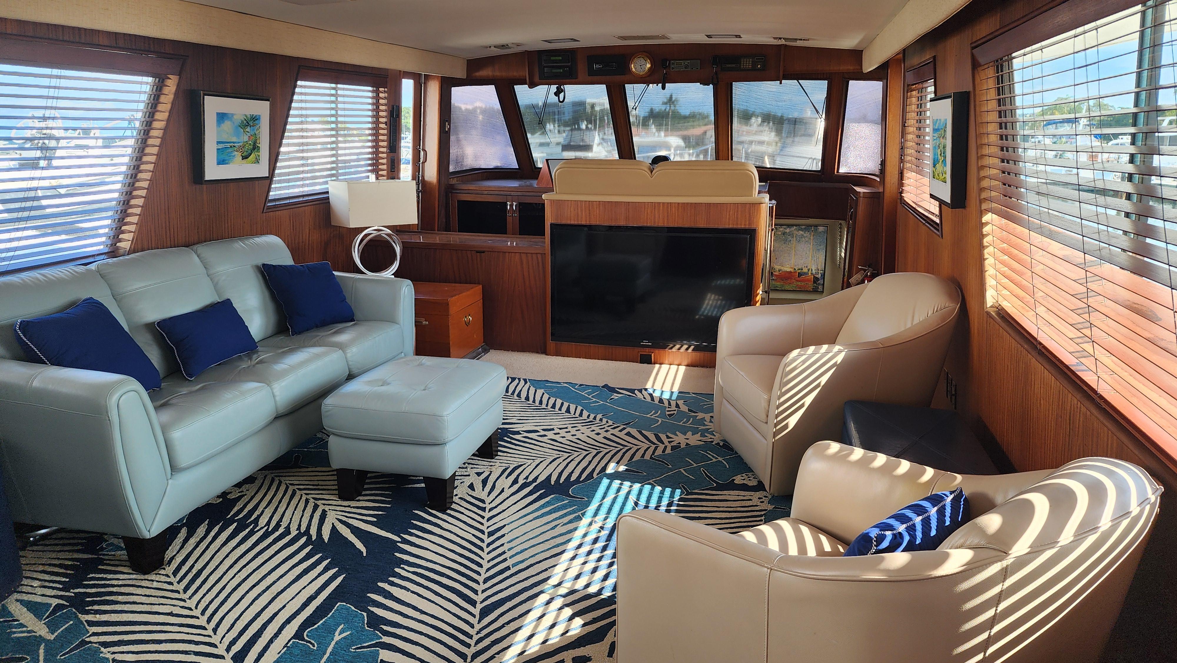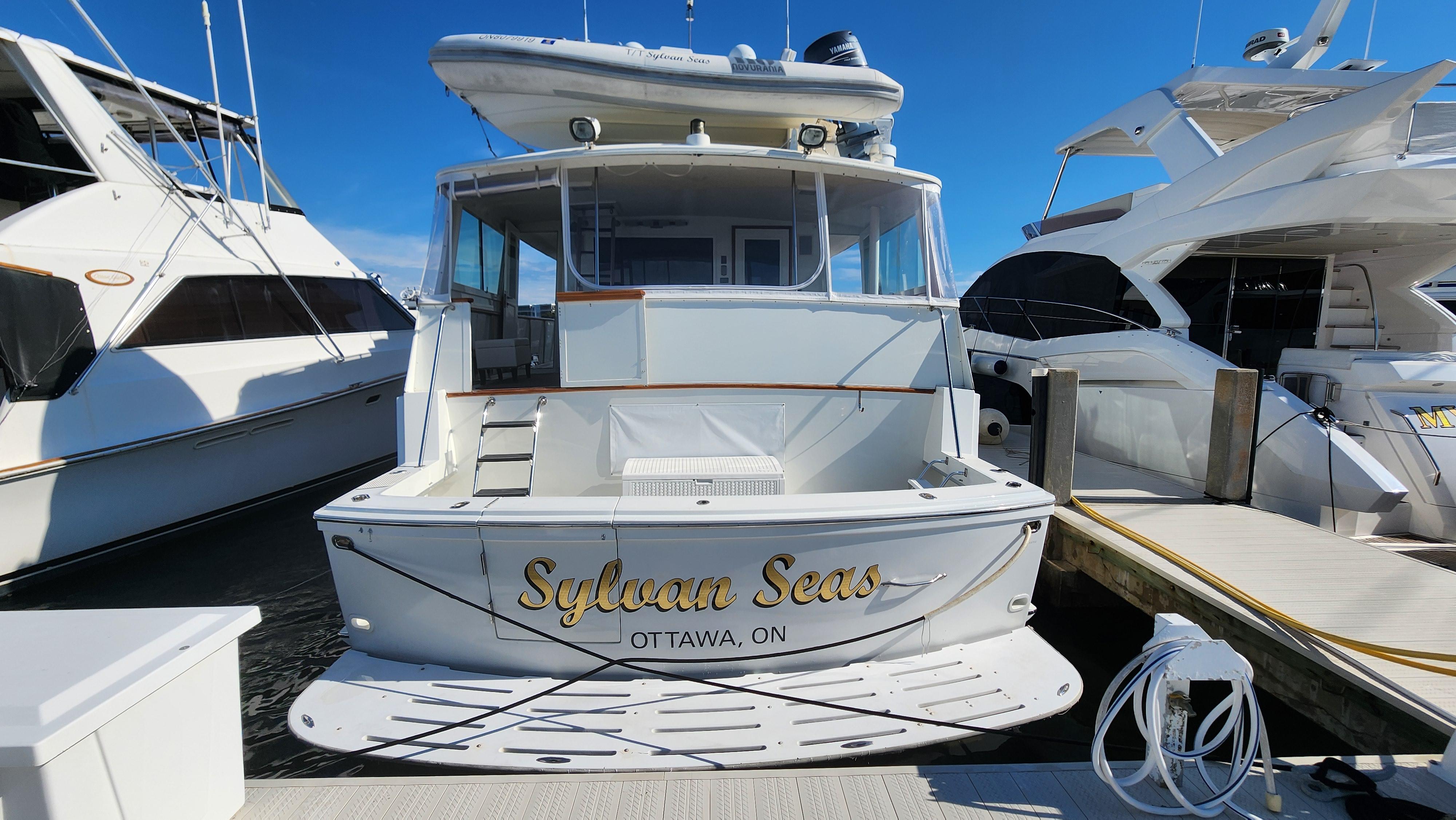 The Sylvan Seas has just arrived back in Florida. She has proved to be a Very Reliable vessel while cruising in the Bahamas for the past two years. The owner has done many upgrades. A Side Power bow thruster has been installed as well as a Clear Line system to keep the air conditioning water lines clear of marine growth. All Galley Maid saltwater heads were removed and replace with Raritan Atlantes heads with freshwater flush. Heads also have a sanitation treatment system. New Garmin chart plotters with Garmin radar installed, as well as a Garmin Smart Pump auto pilot system. The Main Salon has new leather furniture. The aft deck has a Brand-new Scotsman clear ice machine, and new isinglass for the aft deck as well. There is a new Stamoid bimini top. Stabilizer seals were replaced on the last haul out. The water maker membranes were also recently replaced. The power cords and air conditioning sea water pump are new. Also, a new garbage disposer. She has beautiful high luster Imron paint which shines like new. Teak handrail brightwork has just been done as well.