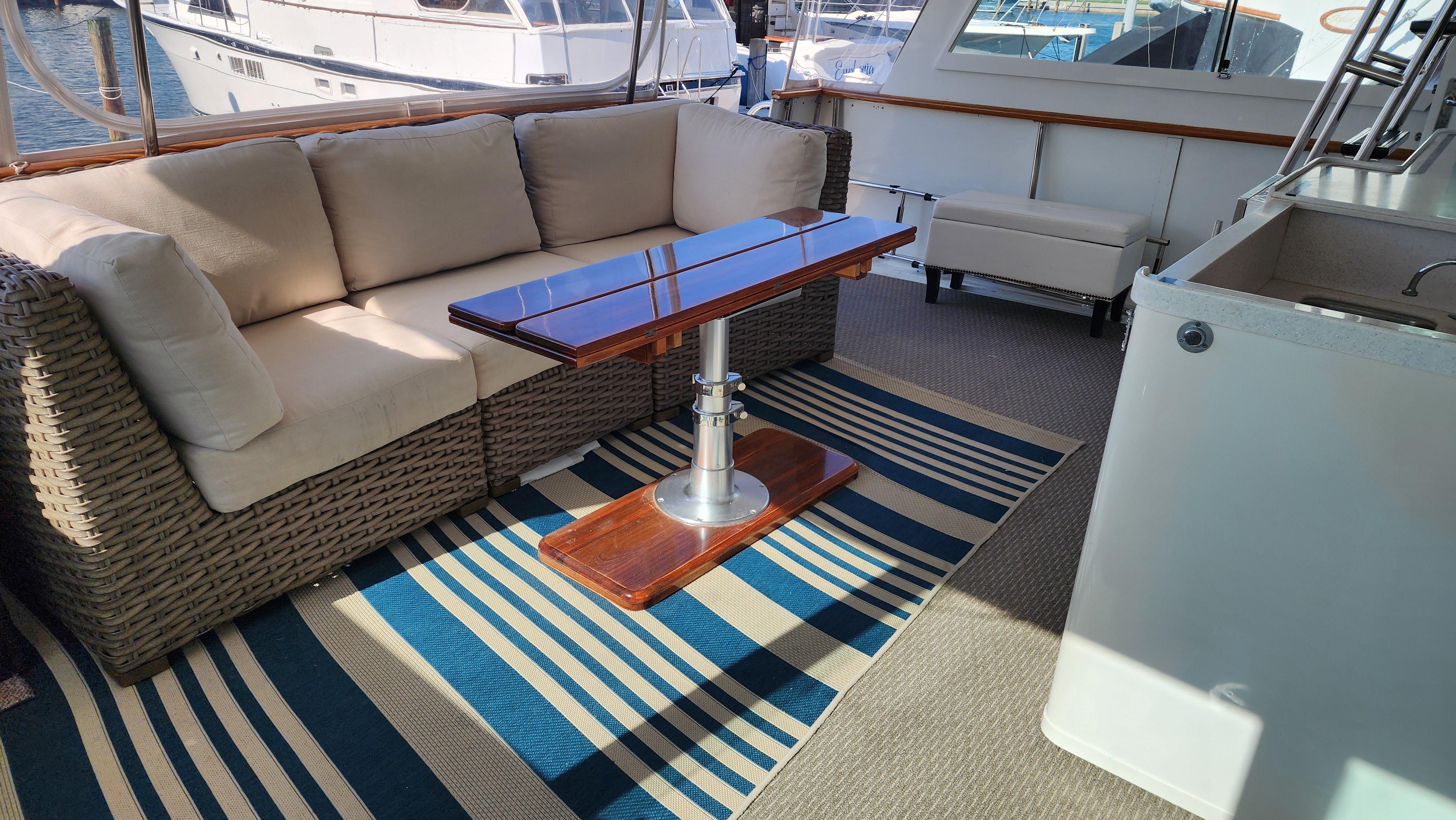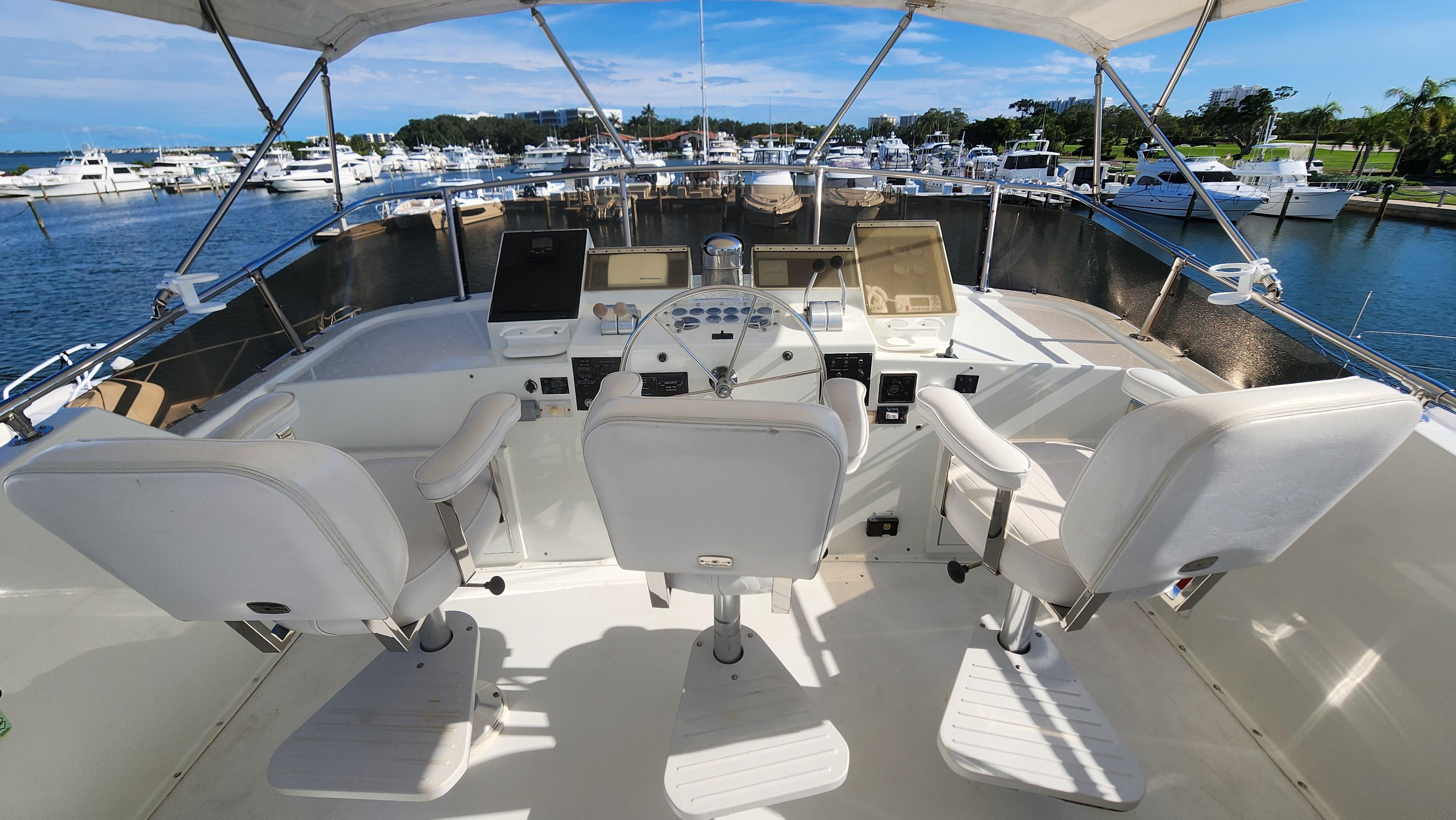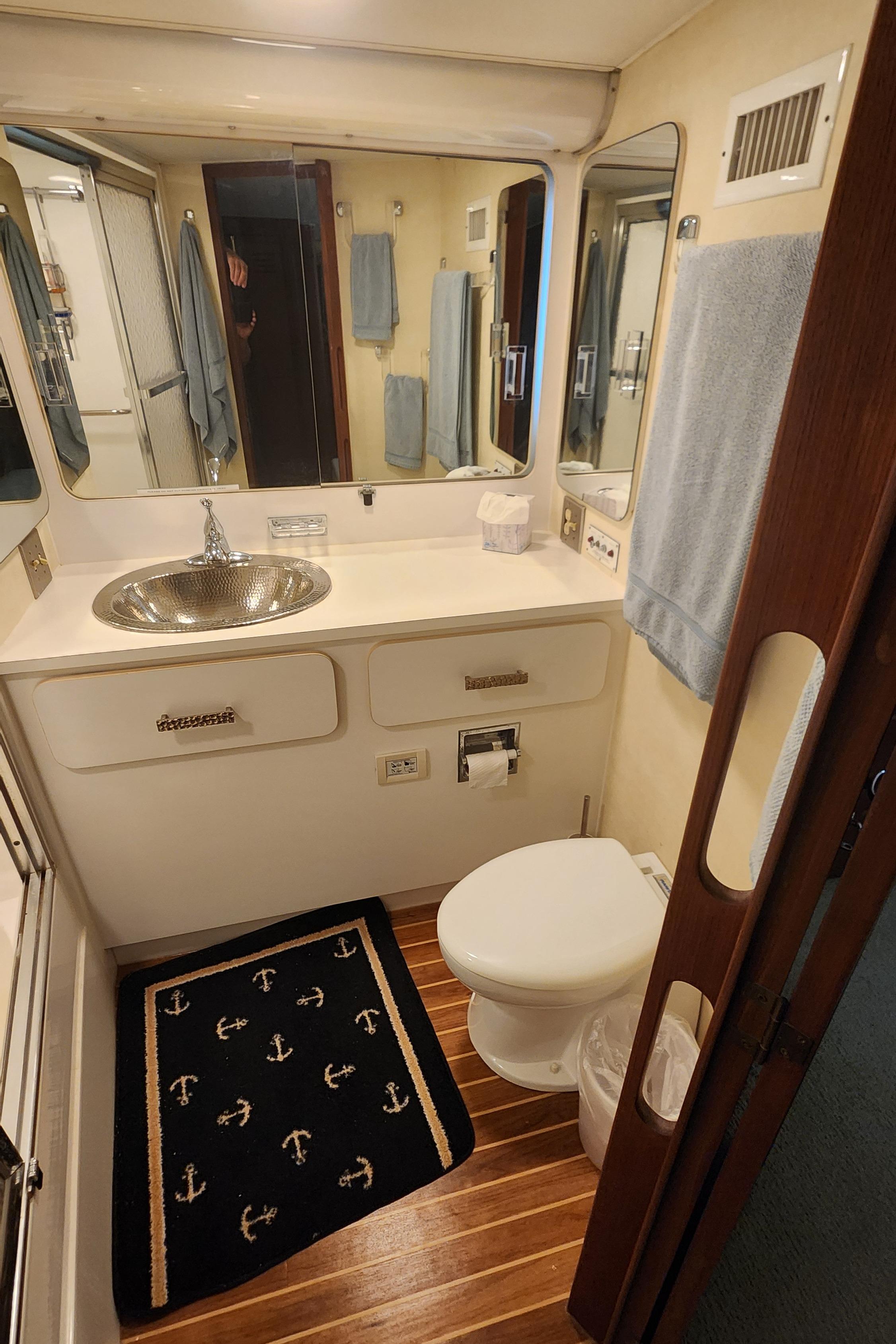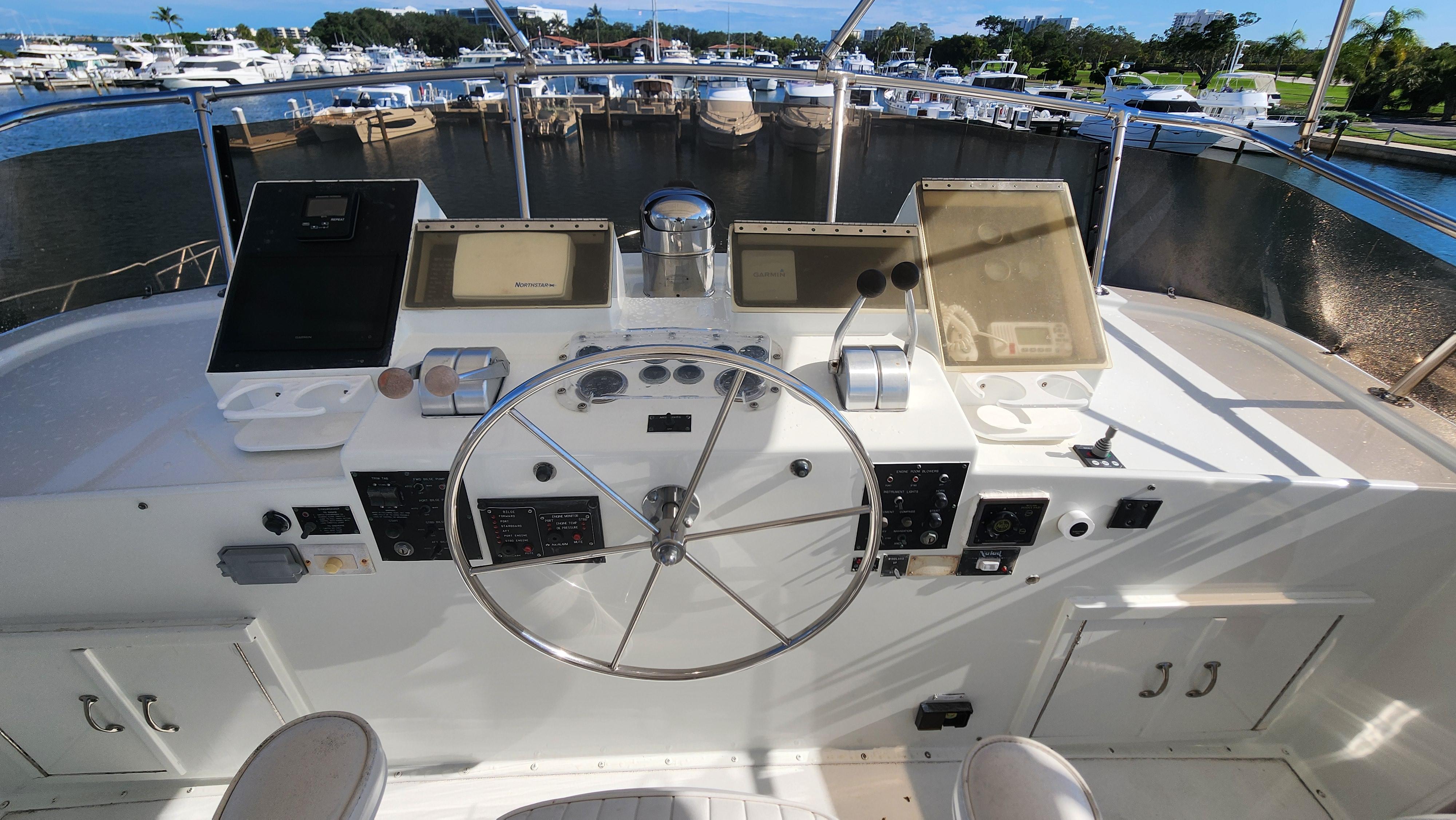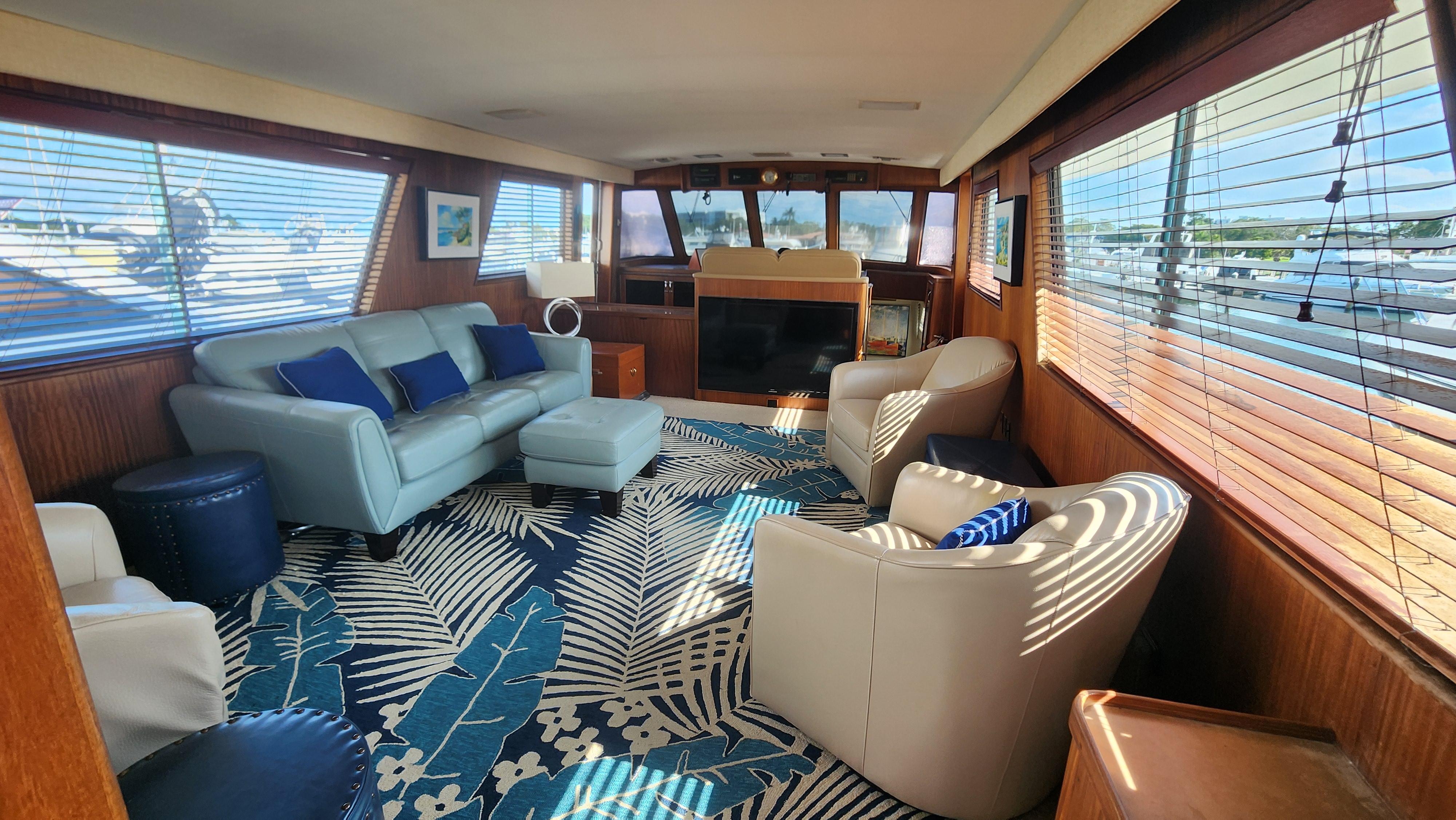 The Sylvan Seas has just arrived back in Florida. She has proved to be a Very Reliable vessel while cruising in the Bahamas for the past two years. The owner has done many upgrades. A Side Power bow thruster has been installed as well as a Clear Line system to keep the air conditioning water lines clear of marine growth. All Galley Maid saltwater heads were removed and replace with Raritan Atlantes heads with freshwater flush. Heads also have a sanitation treatment system. New Garmin chart plotters with Garmin radar installed, as well as a Garmin Smart Pump auto pilot system. The Main Salon has new leather furniture. The aft deck has a Brand-new Scotsman clear ice machine, and new isinglass for the aft deck as well. There is a new Stamoid bimini top. Stabilizer seals were replaced on the last haul out. The water maker membranes were also recently replaced. The power cords and air conditioning sea water pump are new. Also, a new garbage disposer. She has beautiful high luster Imron paint which shines like new. Teak handrail brightwork has just been done as well.