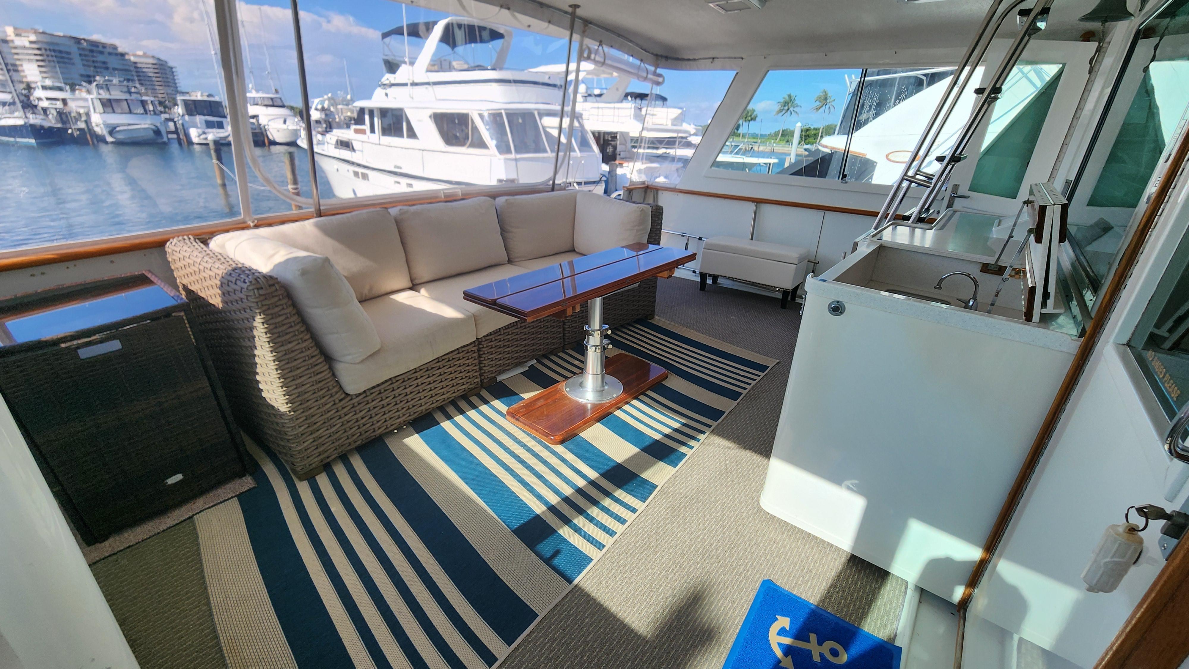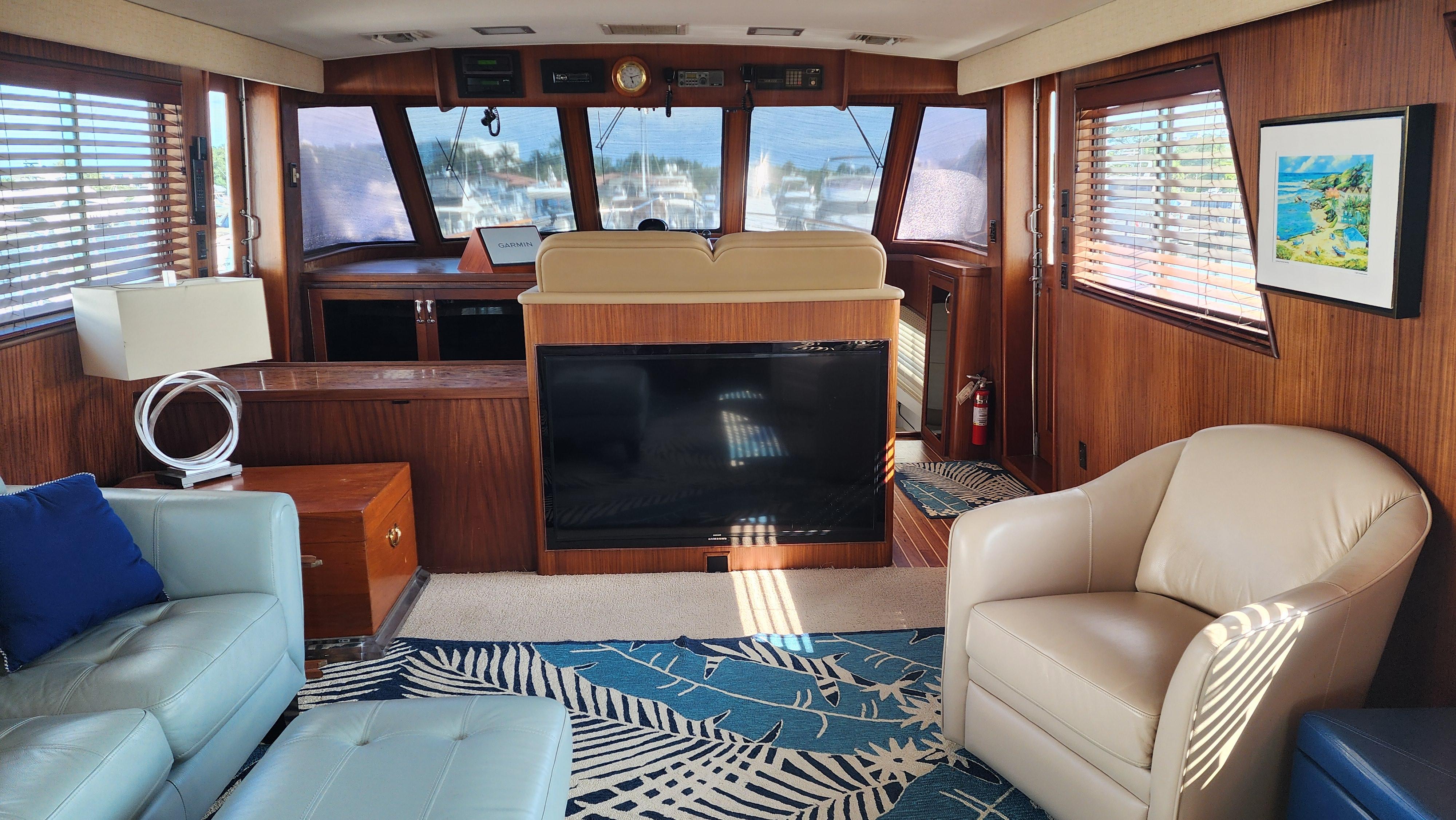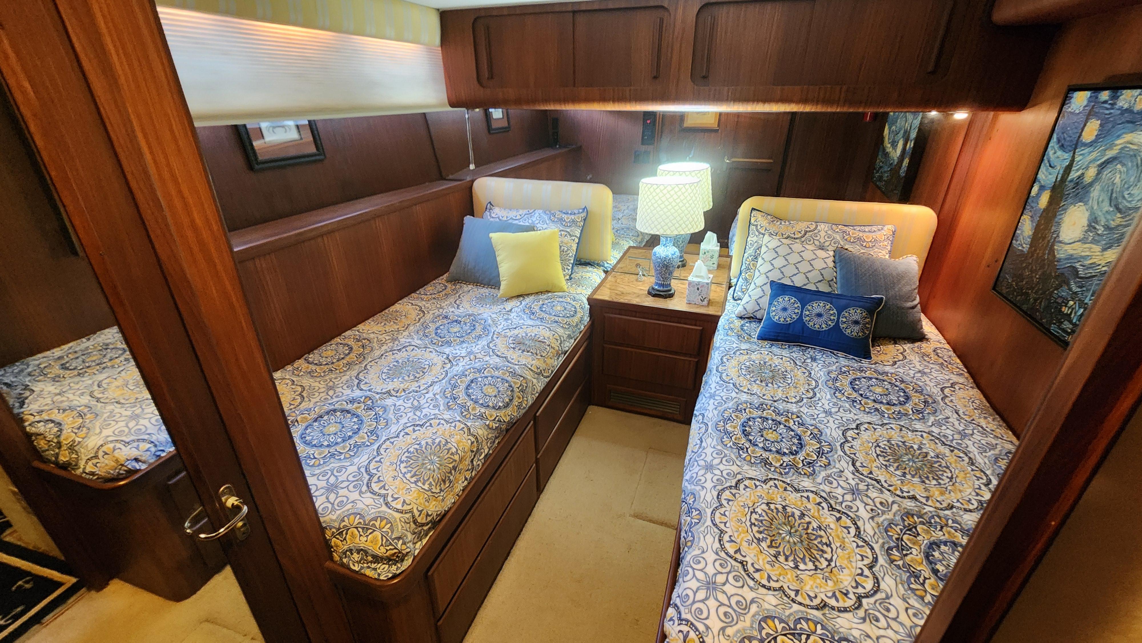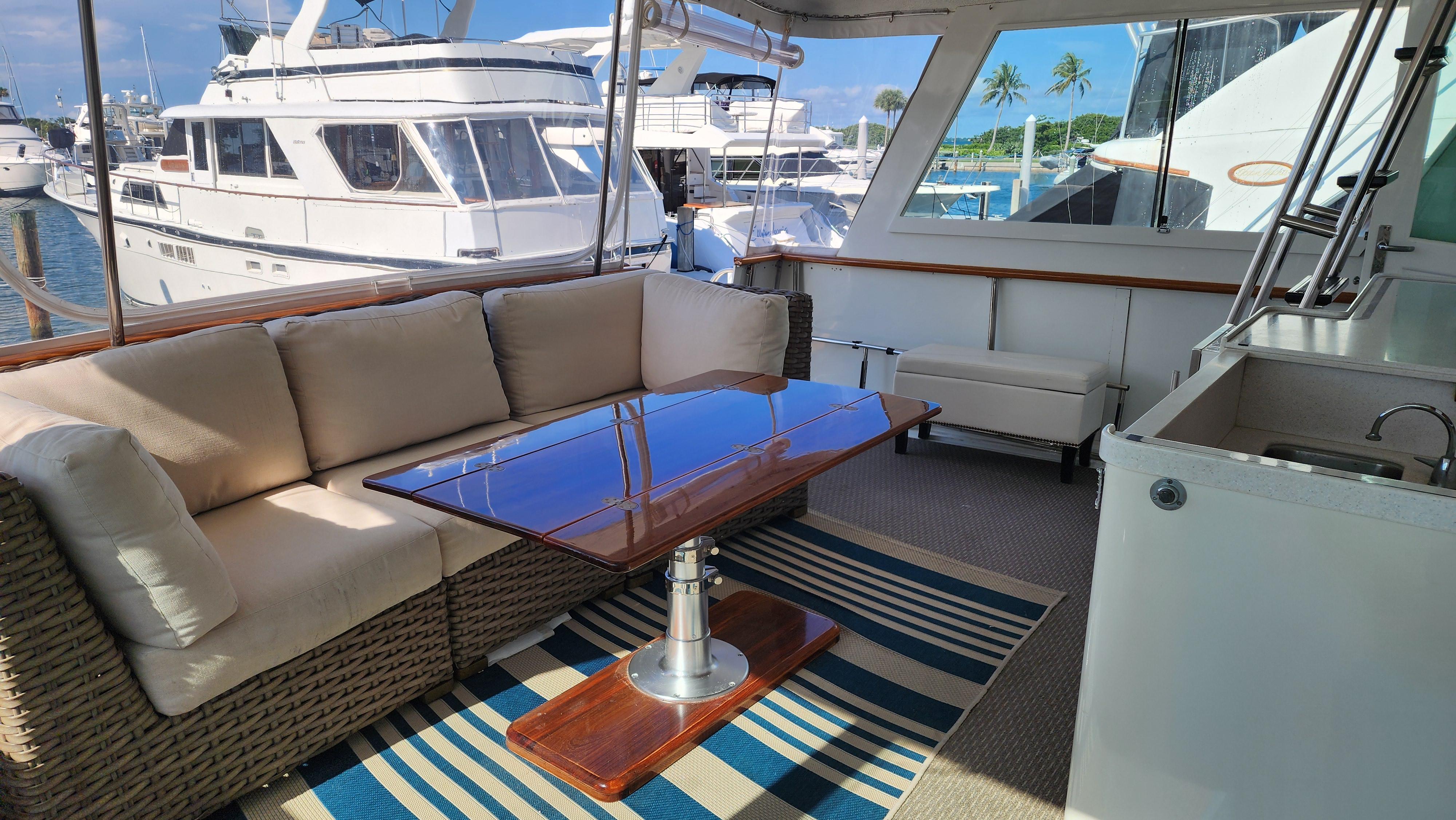 The Sylvan Seas has just arrived back in Florida. She has proved to be a Very Reliable vessel while cruising in the Bahamas for the past two years. The owner has done many upgrades. A Side Power bow thruster has been installed as well as a Clear Line system to keep the air conditioning water lines clear of marine growth. All Galley Maid saltwater heads were removed and replace with Raritan Atlantes heads with freshwater flush. Heads also have a sanitation treatment system. New Garmin chart plotters with Garmin radar installed, as well as a Garmin Smart Pump auto pilot system. The Main Salon has new leather furniture. The aft deck has a Brand-new Scotsman clear ice machine, and new isinglass for the aft deck as well. There is a new Stamoid bimini top. Stabilizer seals were replaced on the last haul out. The water maker membranes were also recently replaced. The power cords and air conditioning sea water pump are new. Also, a new garbage disposer. She has beautiful high luster Imron paint which shines like new. Teak handrail brightwork has just been done as well.