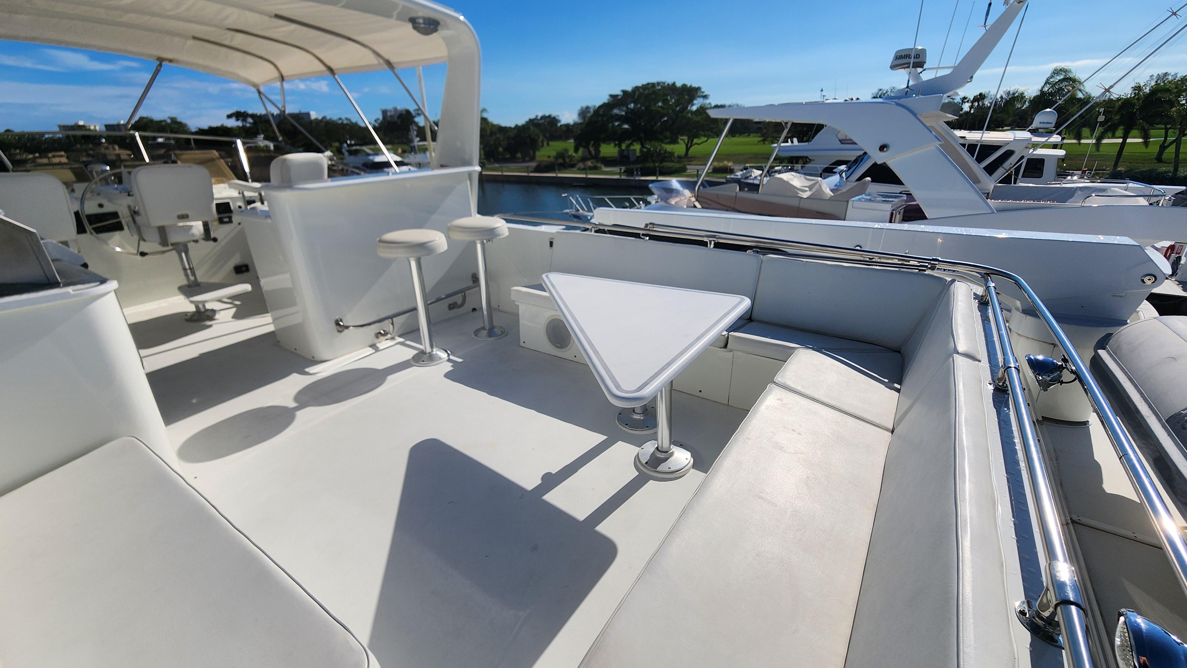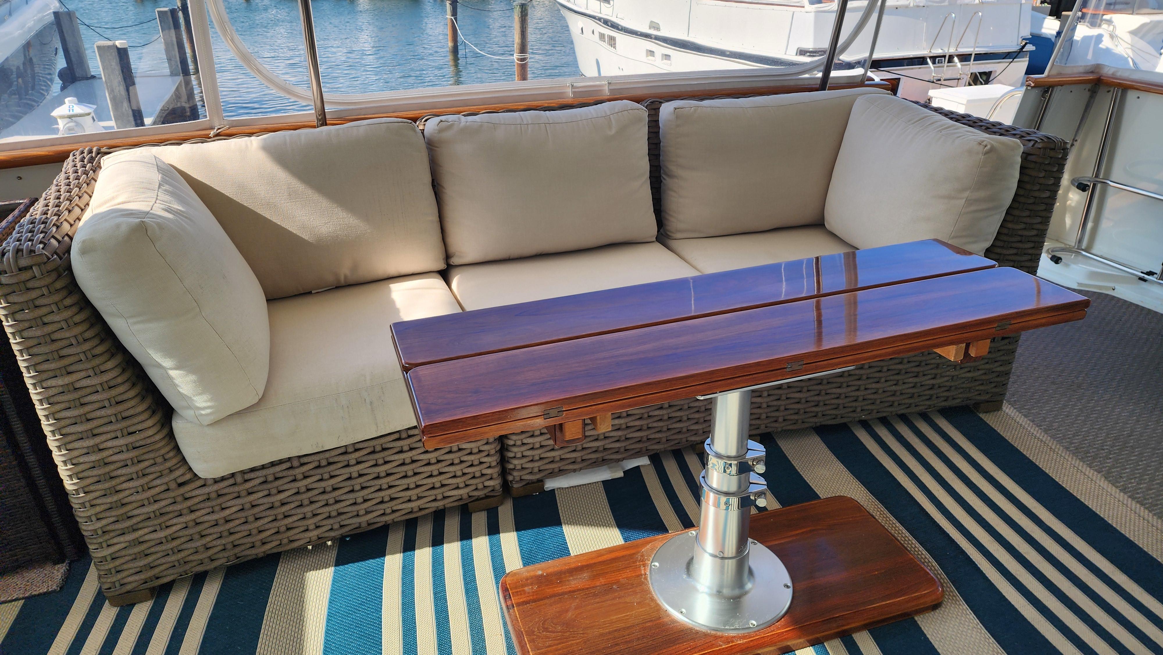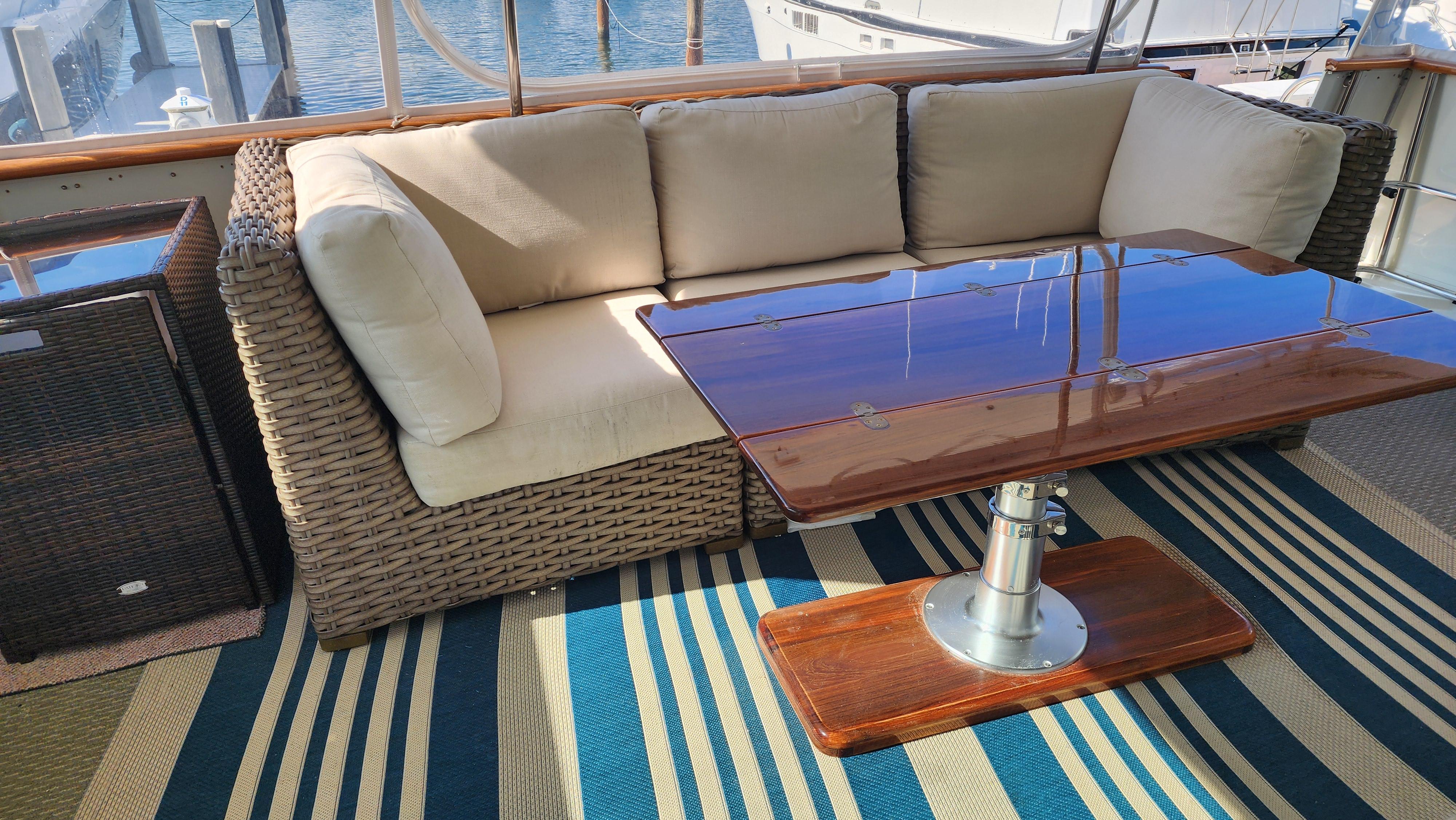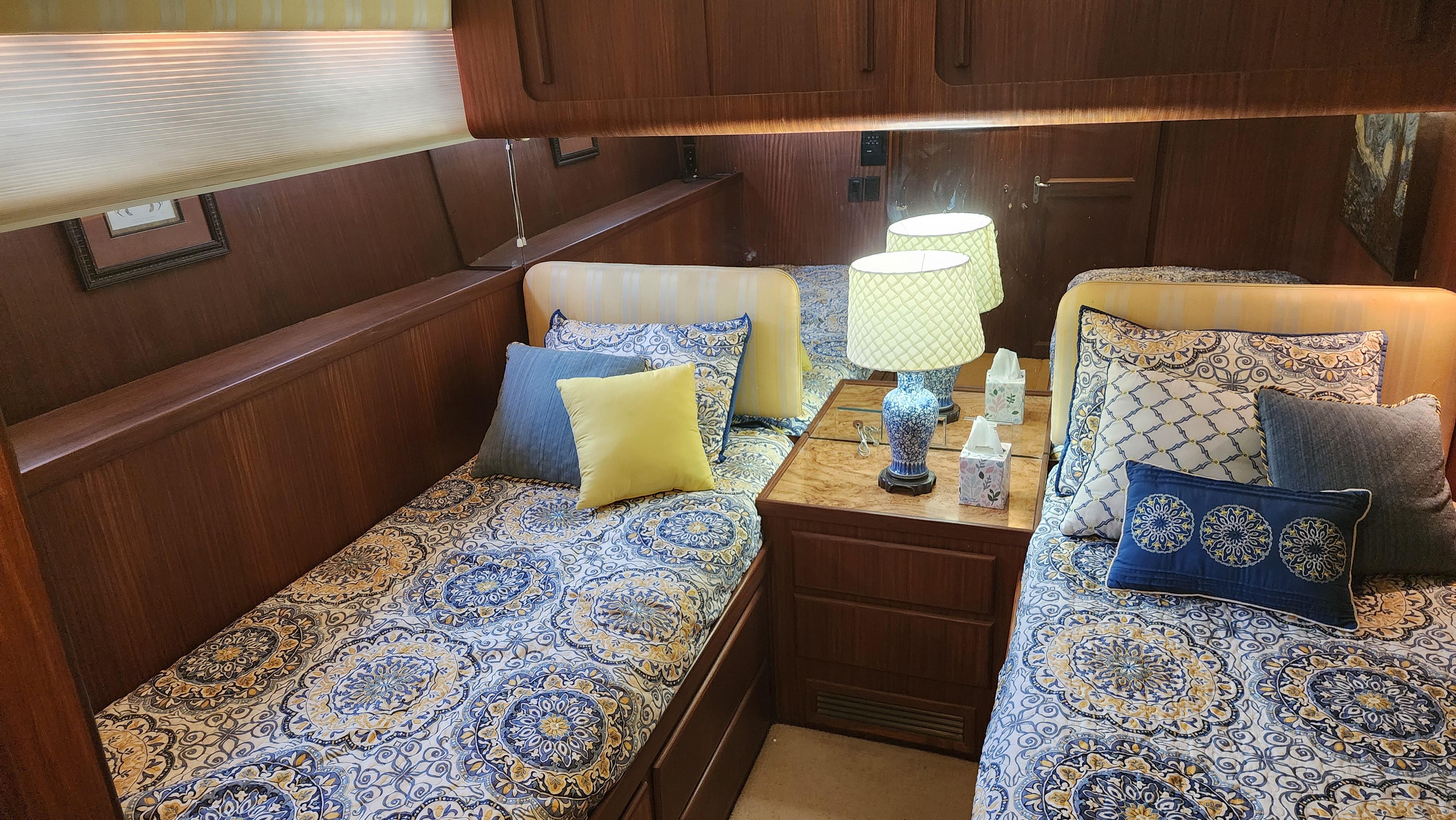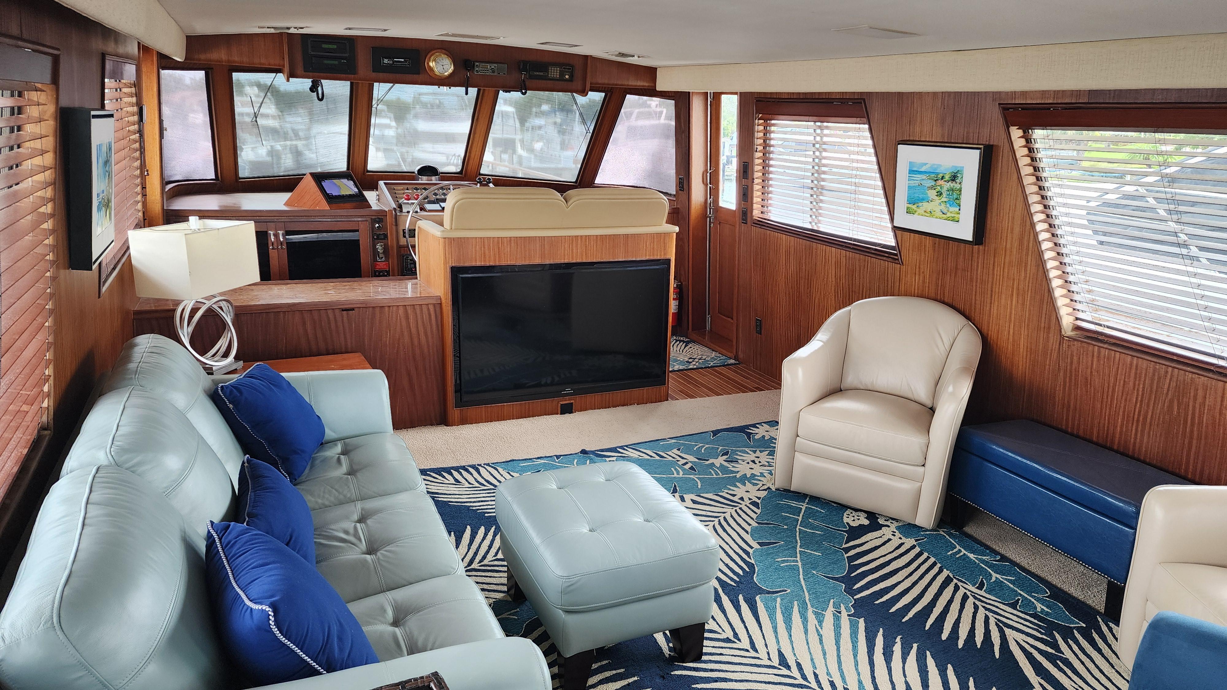 The Sylvan Seas has just arrived back in Florida. She has proved to be a Very Reliable vessel while cruising in the Bahamas for the past two years. The owner has done many upgrades. A Side Power bow thruster has been installed as well as a Clear Line system to keep the air conditioning water lines clear of marine growth. All Galley Maid saltwater heads were removed and replace with Raritan Atlantes heads with freshwater flush. Heads also have a sanitation treatment system. New Garmin chart plotters with Garmin radar installed, as well as a Garmin Smart Pump auto pilot system. The Main Salon has new leather furniture. The aft deck has a Brand-new Scotsman clear ice machine, and new isinglass for the aft deck as well. There is a new Stamoid bimini top. Stabilizer seals were replaced on the last haul out. The water maker membranes were also recently replaced. The power cords and air conditioning sea water pump are new. Also, a new garbage disposer. She has beautiful high luster Imron paint which shines like new. Teak handrail brightwork has just been done as well.
