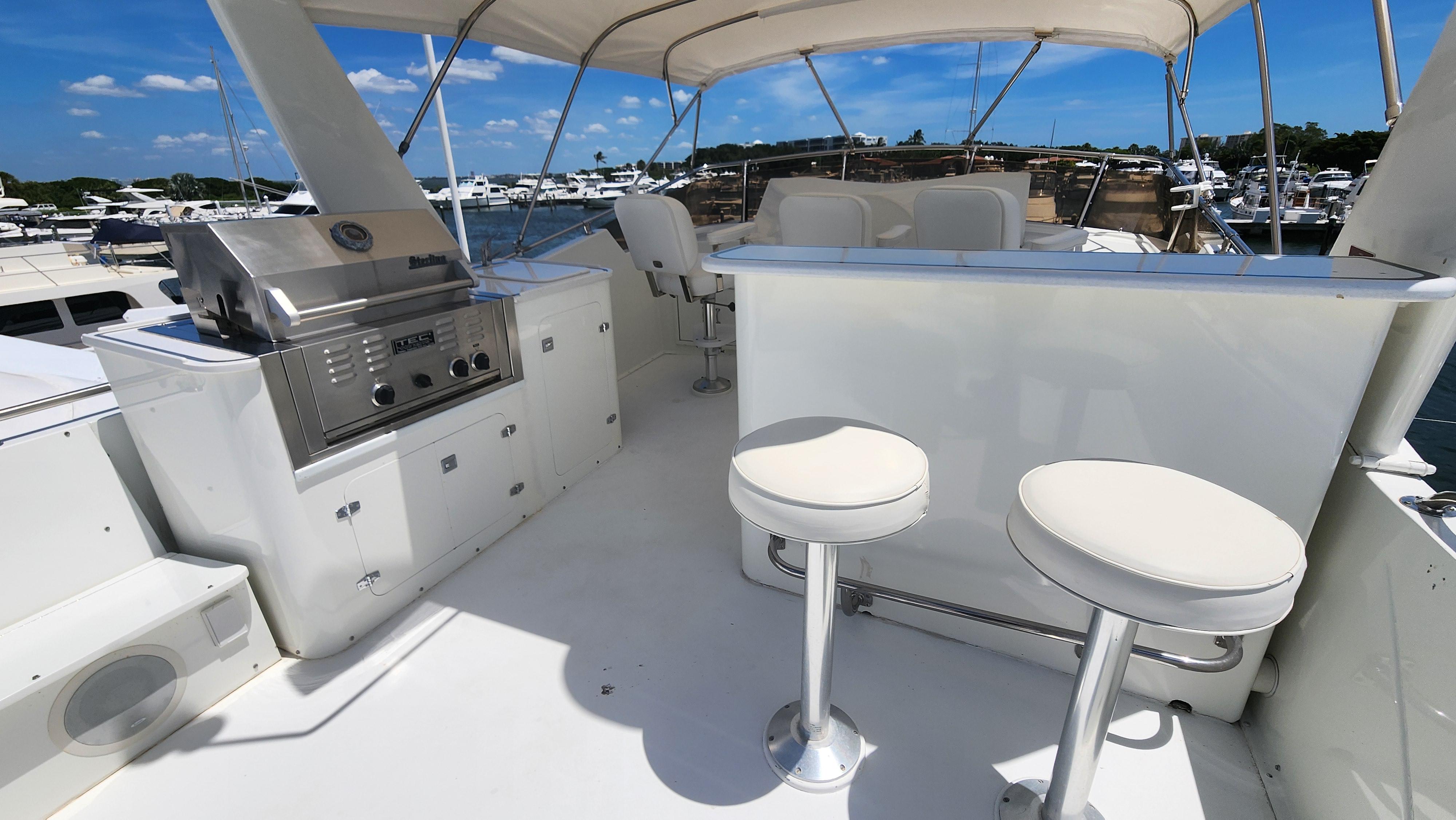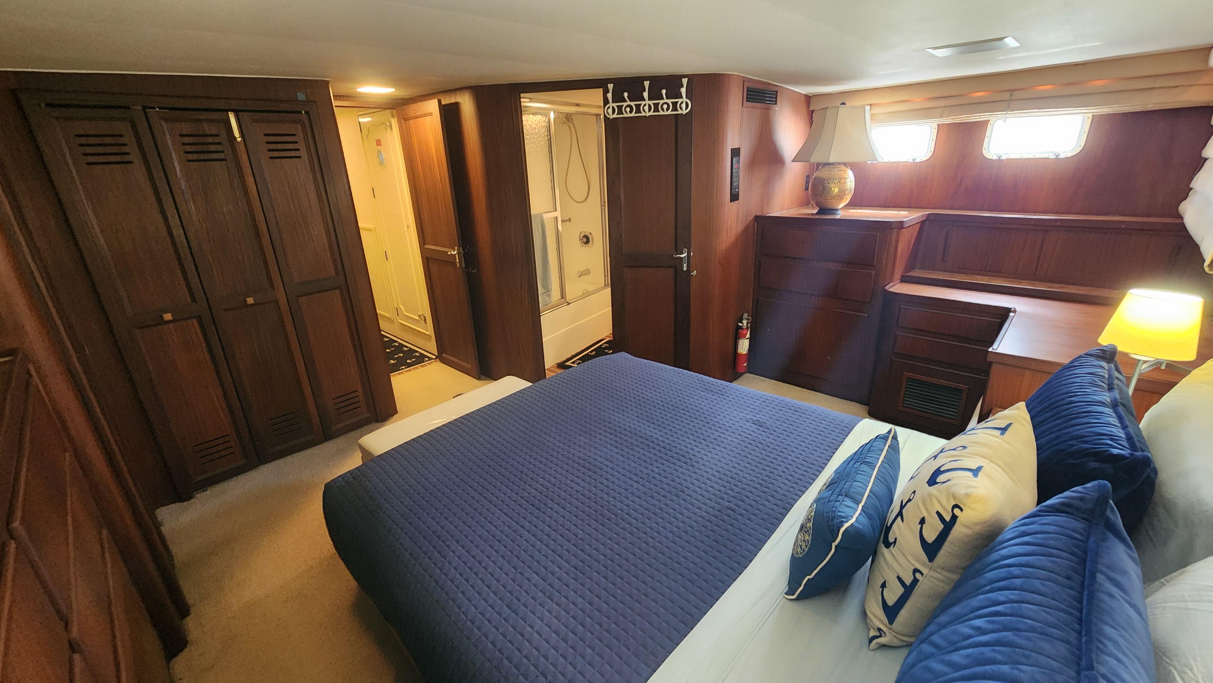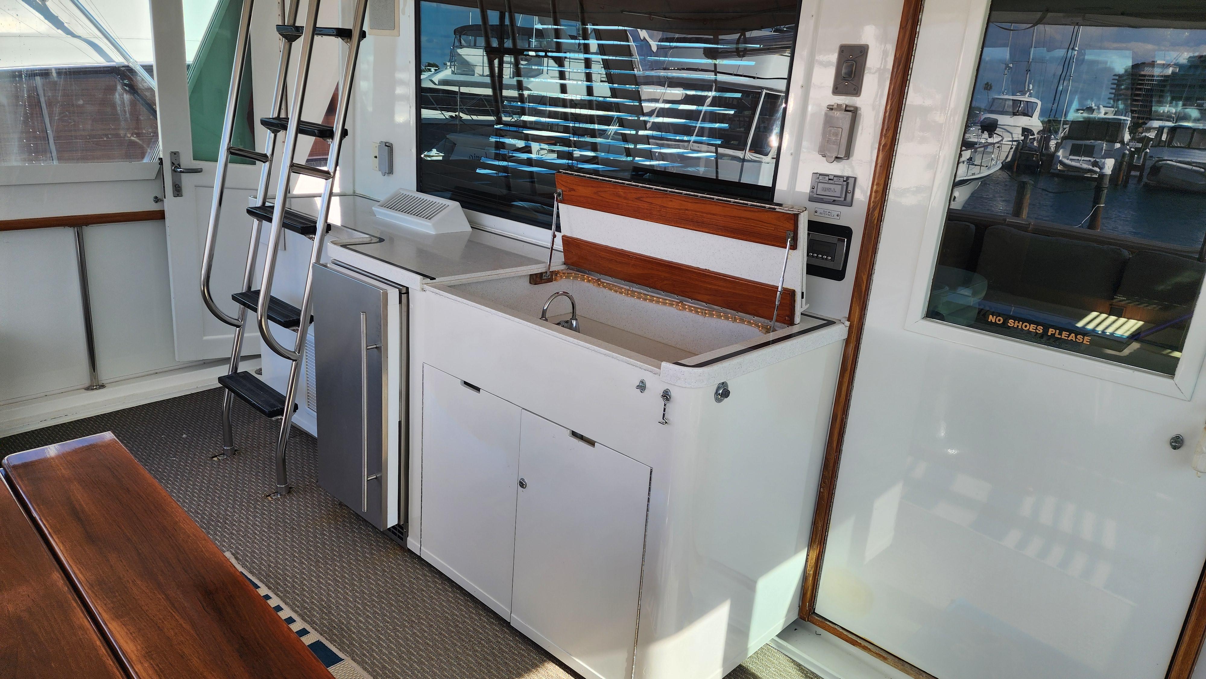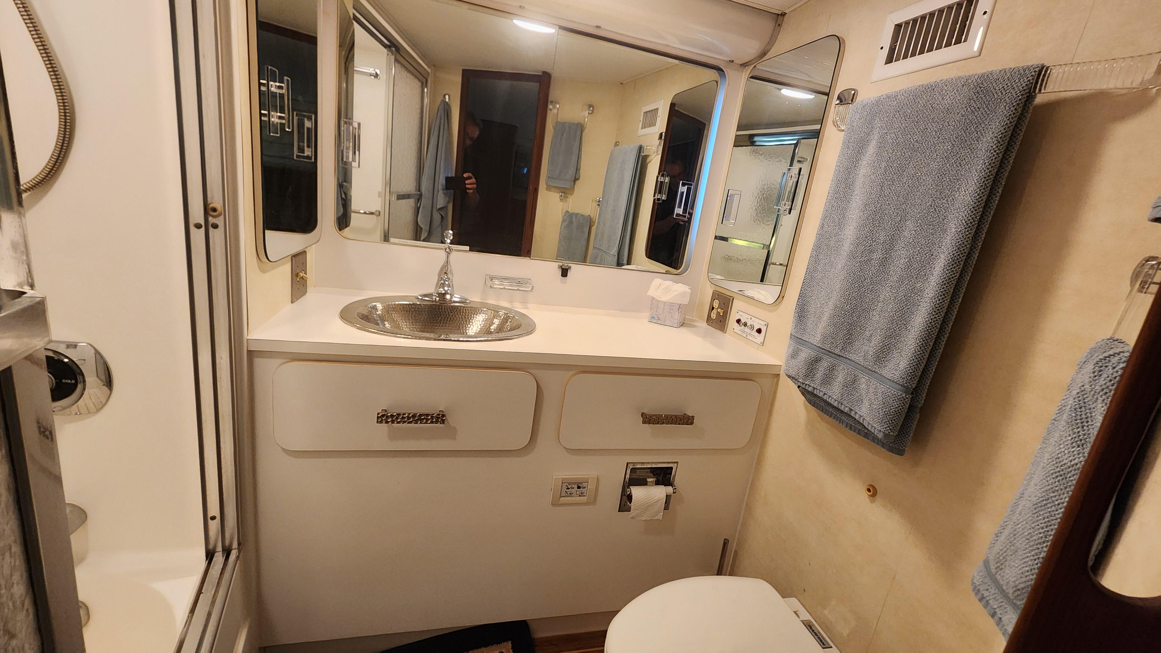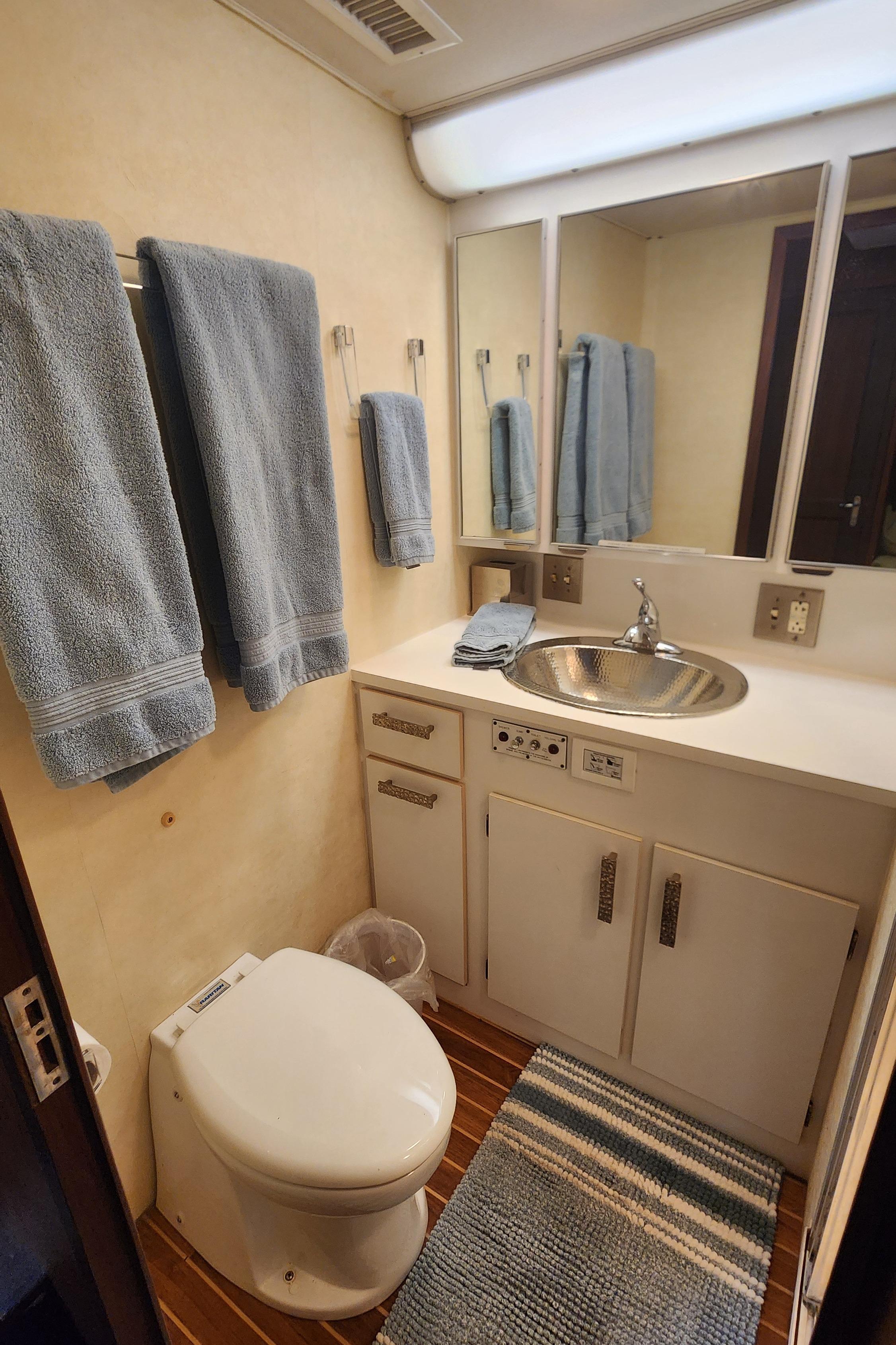 The Sylvan Seas has just arrived back in Florida. She has proved to be a Very Reliable vessel while cruising in the Bahamas for the past two years. The owner has done many upgrades. A Side Power bow thruster has been installed as well as a Clear Line system to keep the air conditioning water lines clear of marine growth. All Galley Maid saltwater heads were removed and replace with Raritan Atlantes heads with freshwater flush. Heads also have a sanitation treatment system. New Garmin chart plotters with Garmin radar installed, as well as a Garmin Smart Pump auto pilot system. The Main Salon has new leather furniture. The aft deck has a Brand-new Scotsman clear ice machine, and new isinglass for the aft deck as well. There is a new Stamoid bimini top. Stabilizer seals were replaced on the last haul out. The water maker membranes were also recently replaced. The power cords and air conditioning sea water pump are new. Also, a new garbage disposer. She has beautiful high luster Imron paint which shines like new. Teak handrail brightwork has just been done as well.