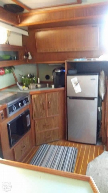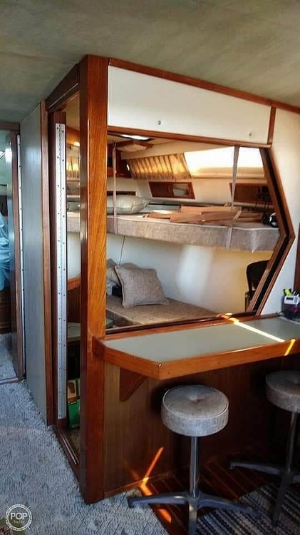 This vessel is located in Warwick, Rhode Island and is in good condition. She is also equipped with twin Mercruiser engines.