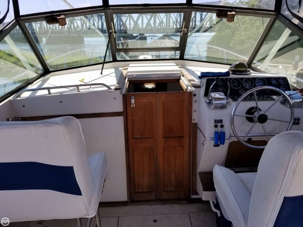 This vessel is located in New Milford, Connecticut and is in need of some work. She is also equipped with twin Mercruiser engines that have only 20 hours.