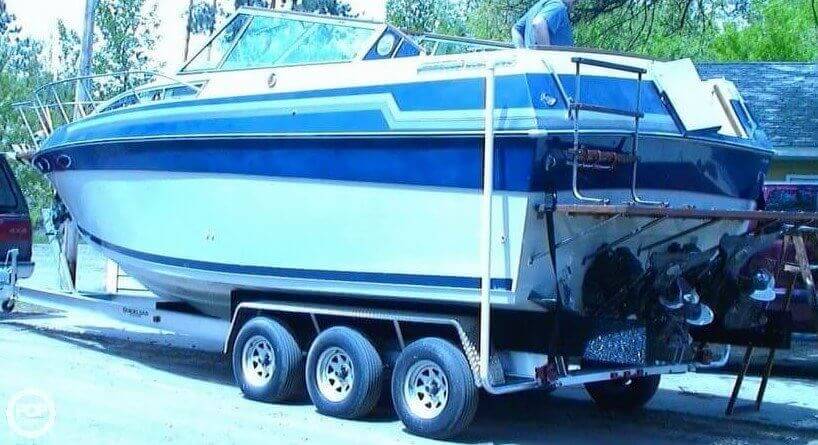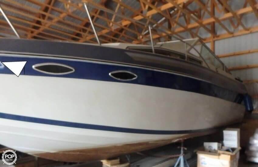 This boat is located in Cambridge, Minnesota and is in good condition. She is also equipped with twin Mercruiser engines that have 578 hours.