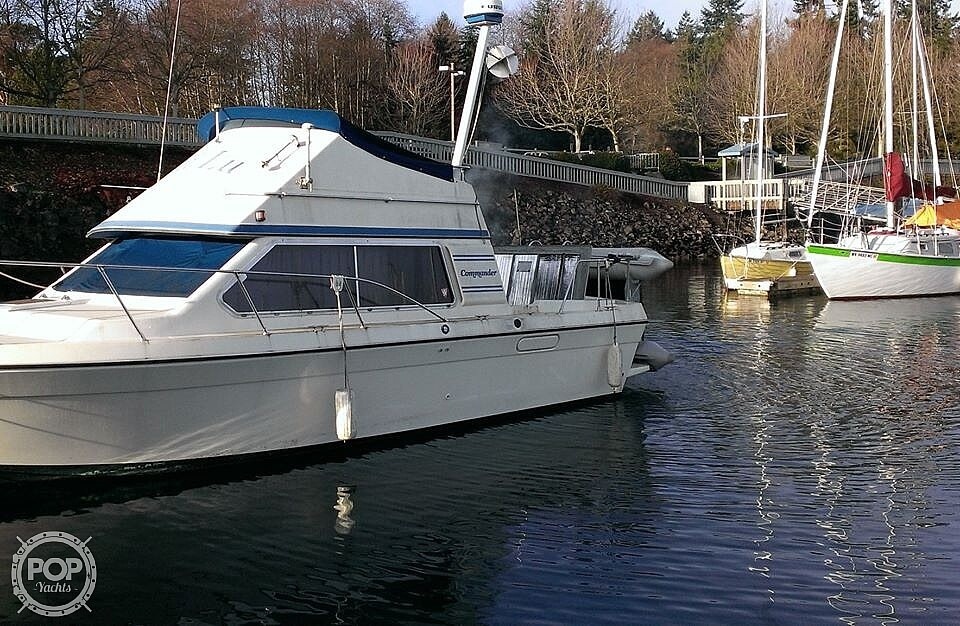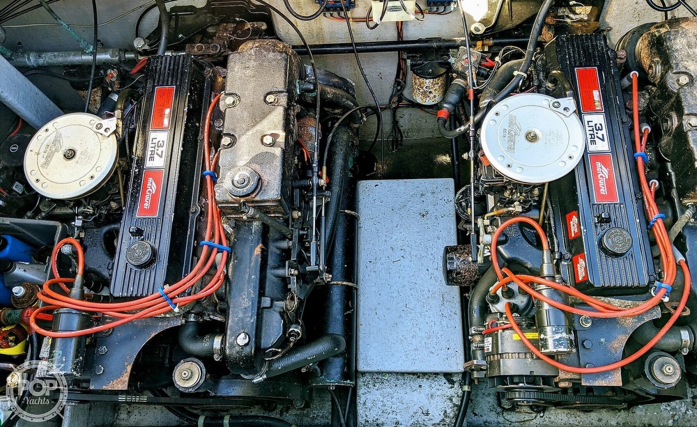 This boat is located in Sequim, Washington and is in good condition. She is also equipped with twin Mercruiser engines.