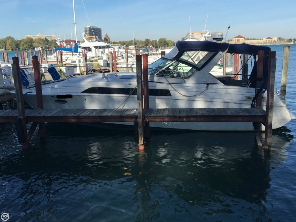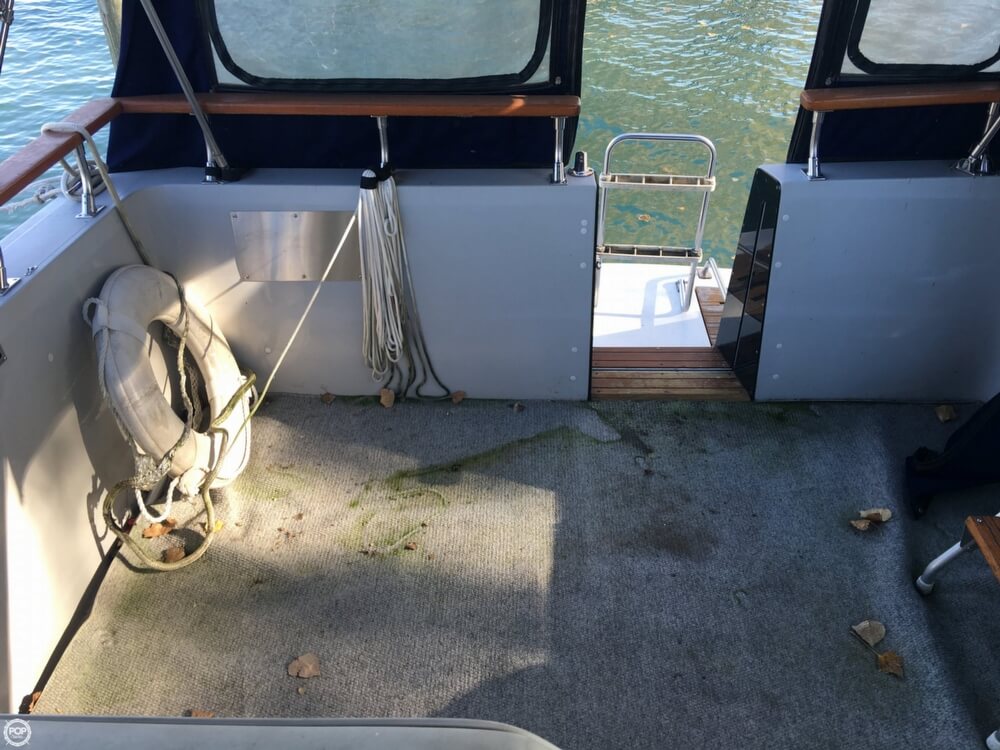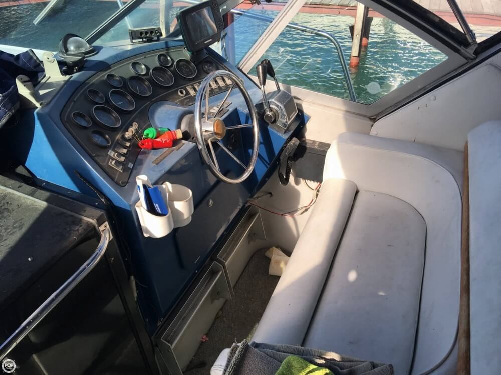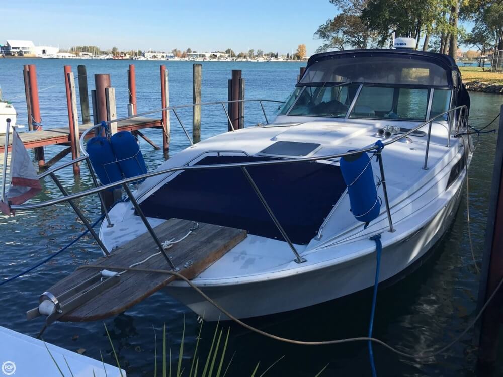 This boat is located in Rockwood, Michigan and is in decent condition. She is also equipped with twin Mercruiser engines that have 527 hours.