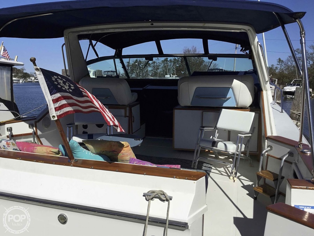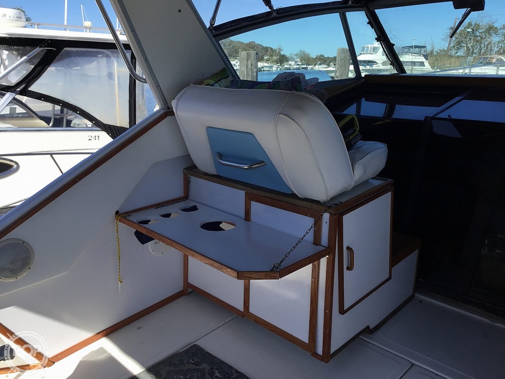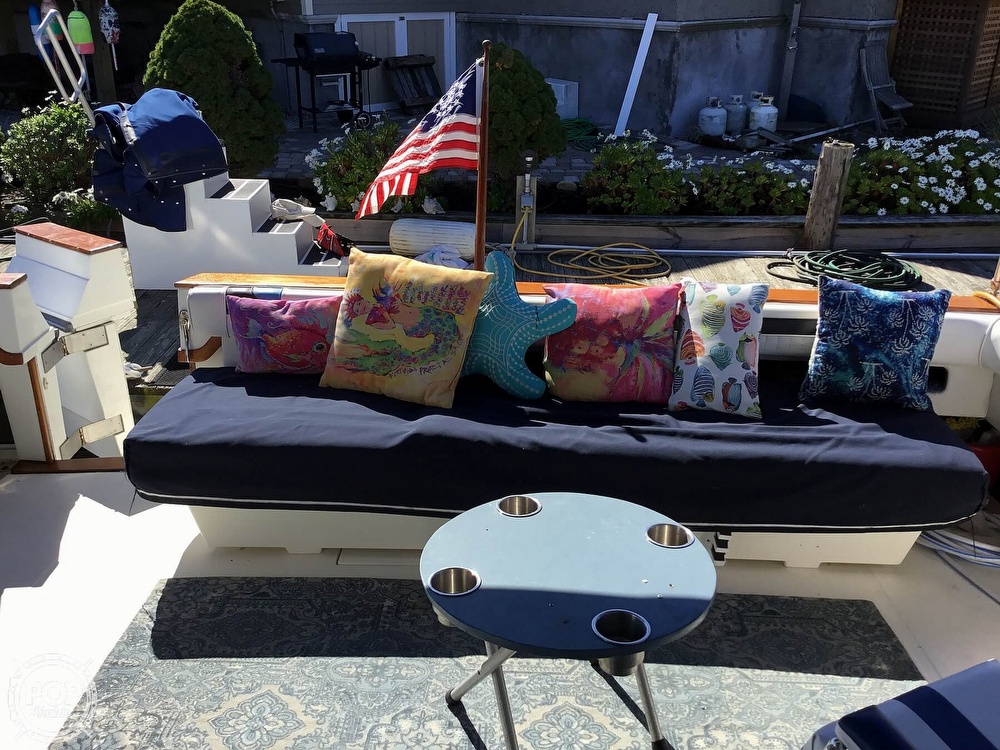 This vessel is located in Sayville, New York and is in good condition. She is also equipped with twin Mercruiser engines.