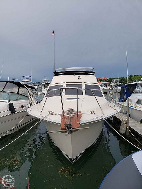 This vessel is located in Milwaukee, Wisconsin and is in great condition. She is also equipped with twin Mercruiser engines that have 891 hours.