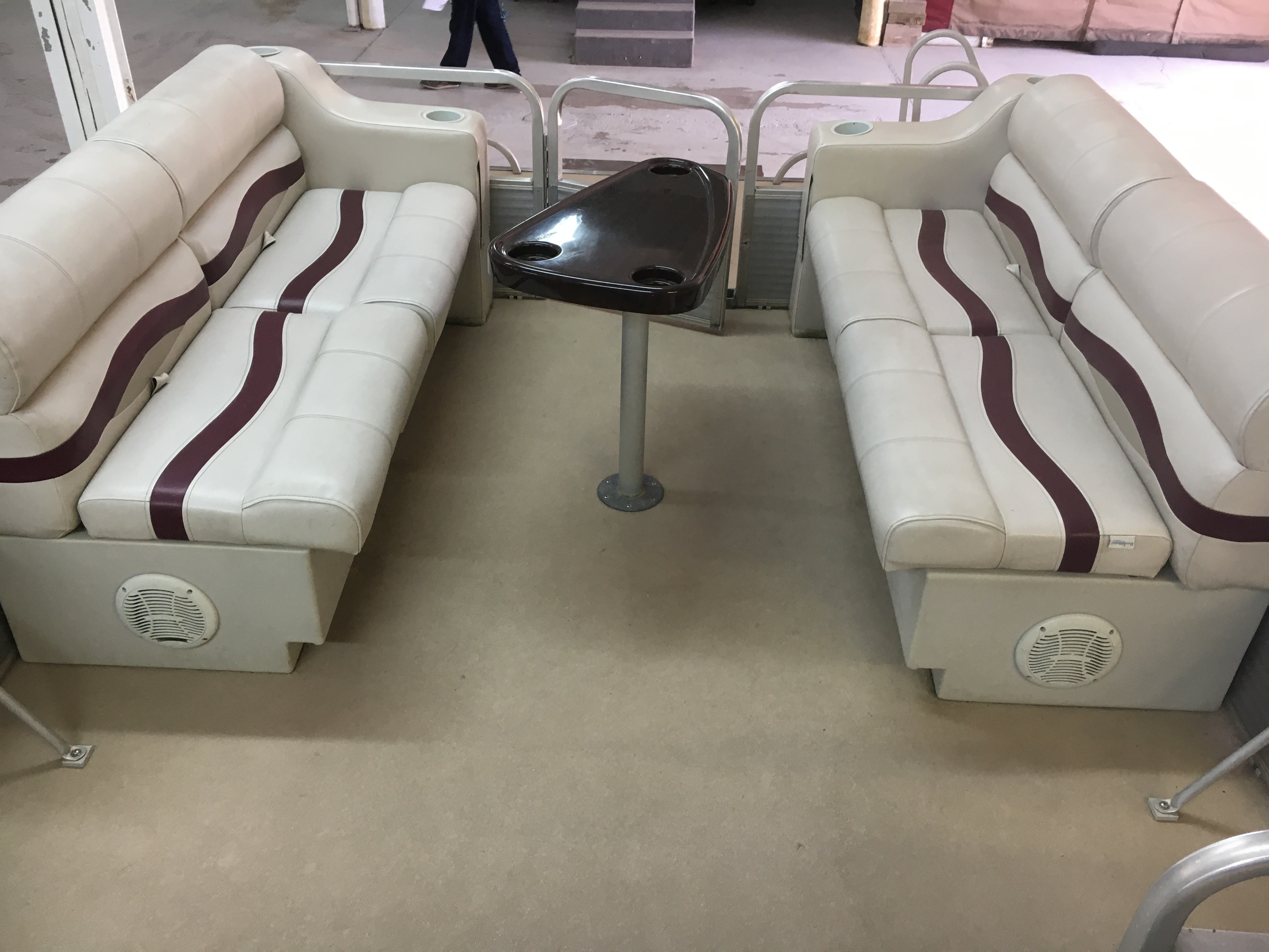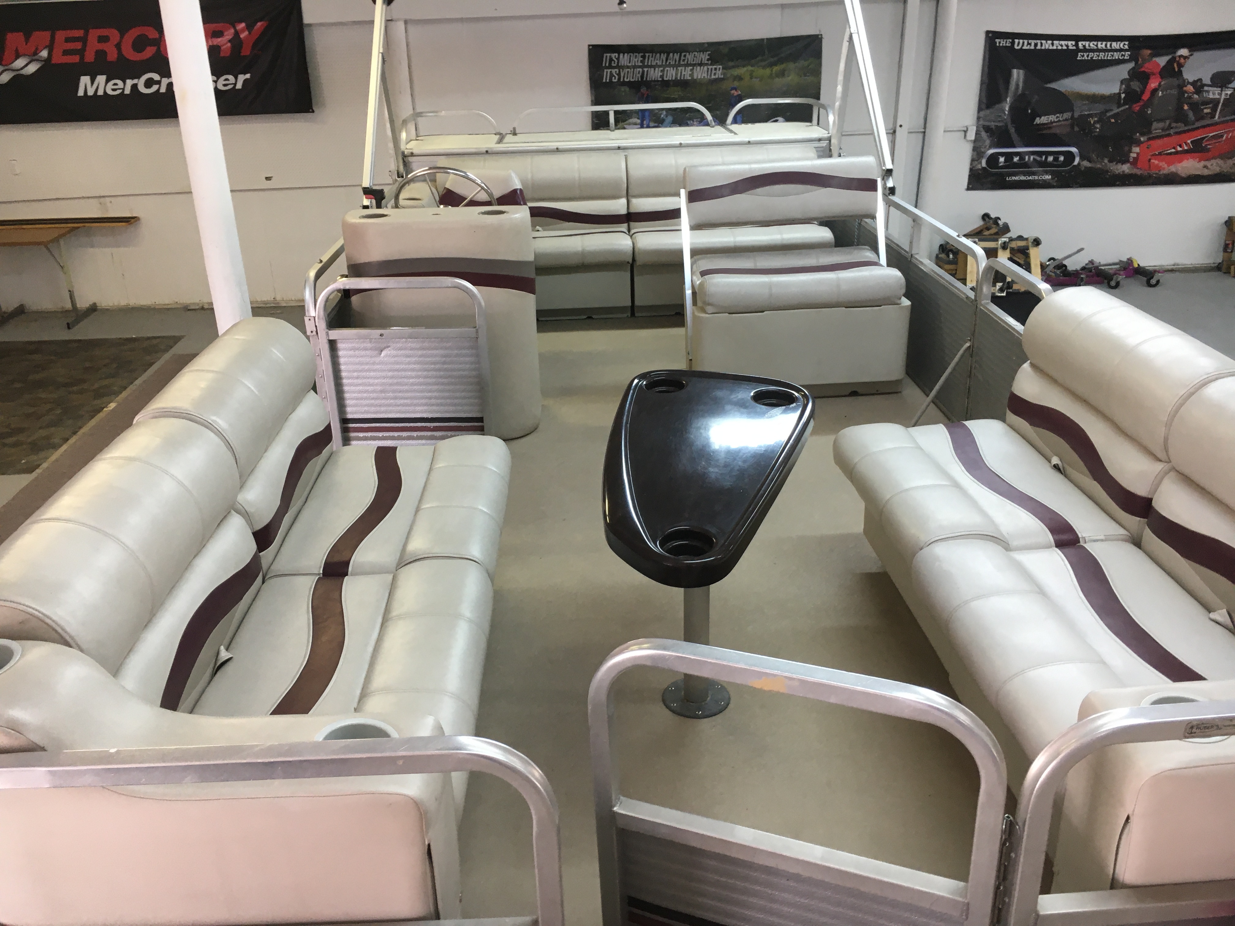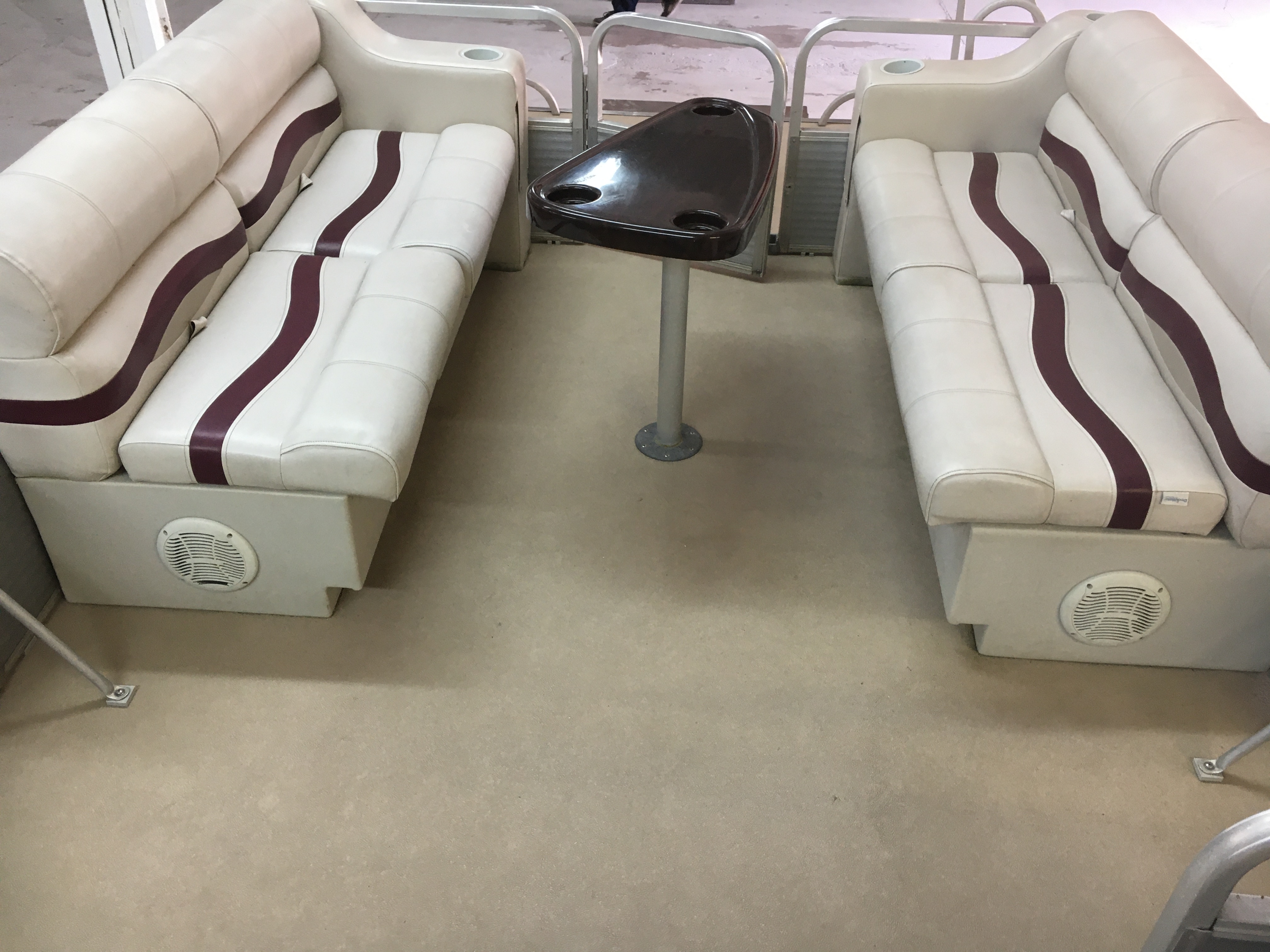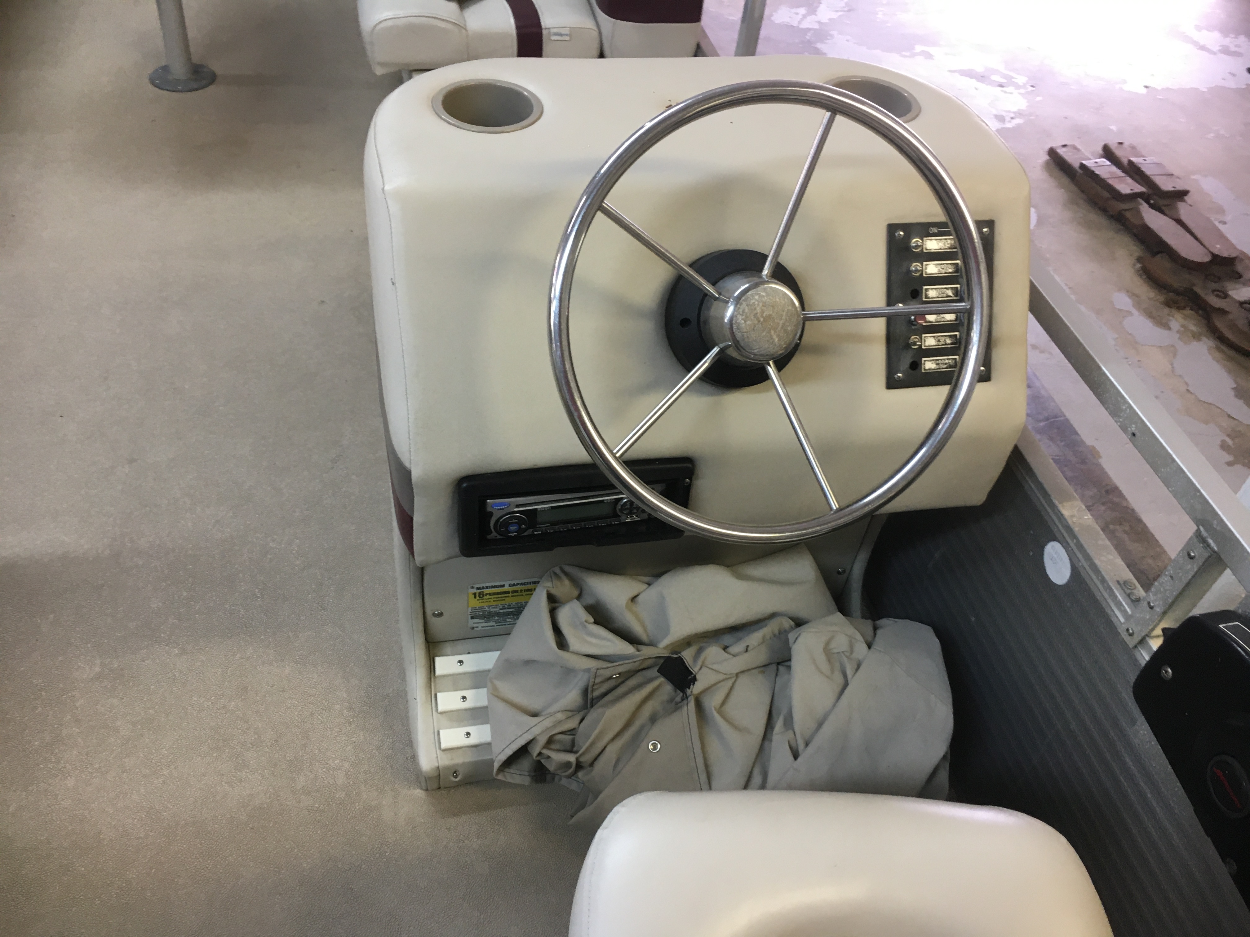 LOA: 24’3”, Tube Diameter: 22”, Beam: 8’, Deck Length: 21’5”, Capacity: 16, Table, Bimini Top, Tow Ring, Jensen MSR 3012 Radio, (1) Livewell, 4-Step Boarding Ladder, Newer Vinyl Furniture, Cup Holders, Navigation Lights, Fire Extinguisher