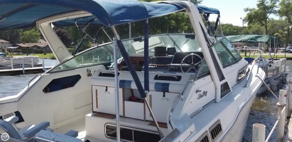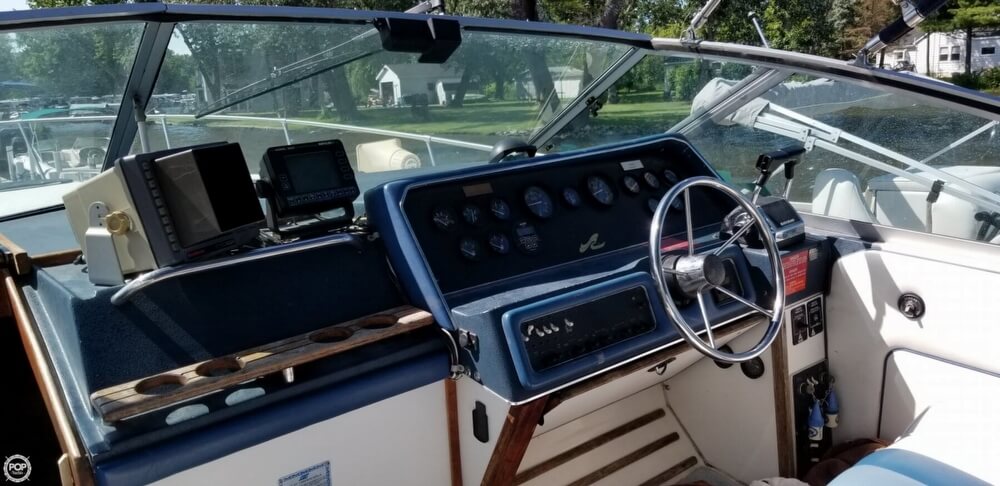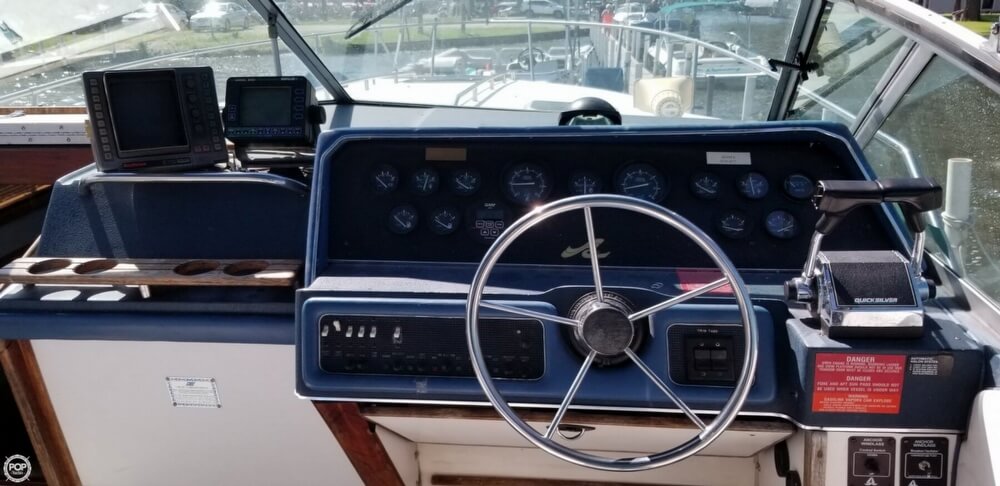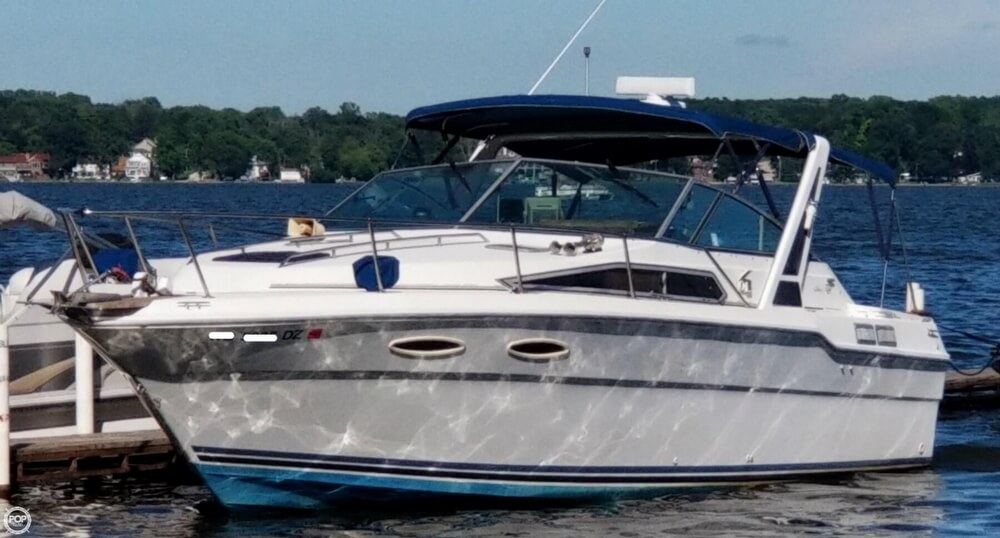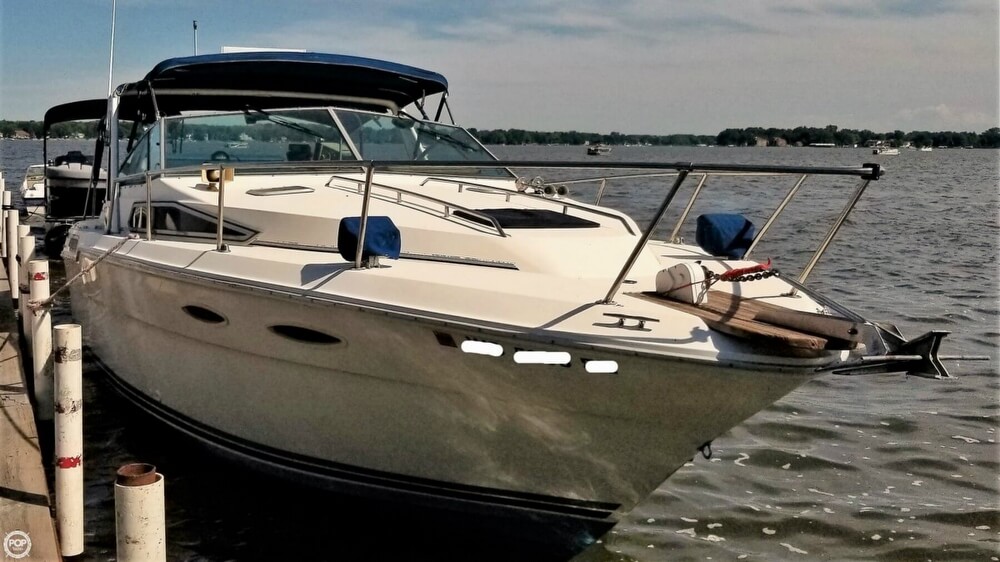 This boat is located in Fox Lake, Illinois and is in good condition. She is also equipped with twin Mercruiser engines that have only 250 hours.